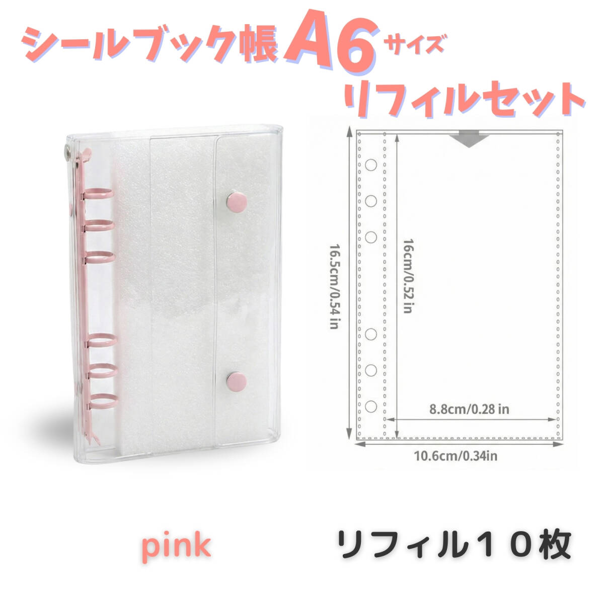 シール帳 A6 透明クリアバインダー ピンク 6穴【リフィル10枚付】シールバインダー シール手帳 ステッカーブック 推し活 かわいい