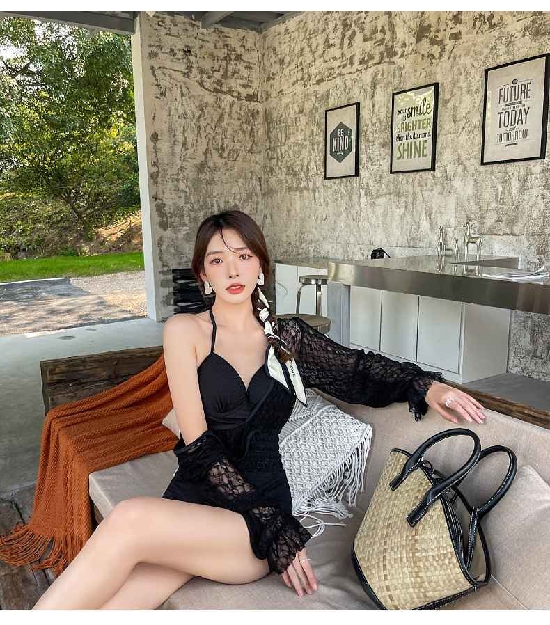 ・肩から手首までは透け感のある素材で大人っぽさを演出。