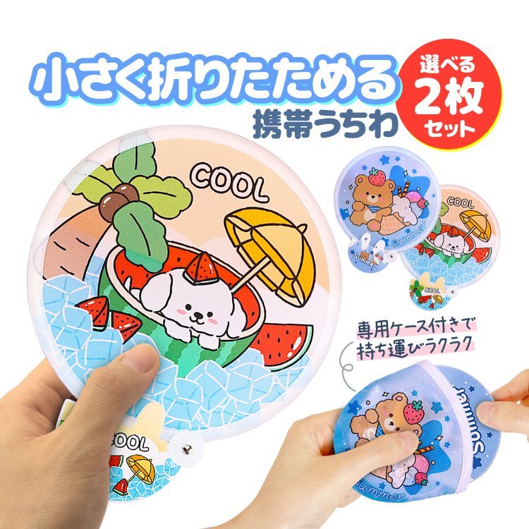 小さく折りたためて携帯できる折りたたみうちわ2枚セットです。