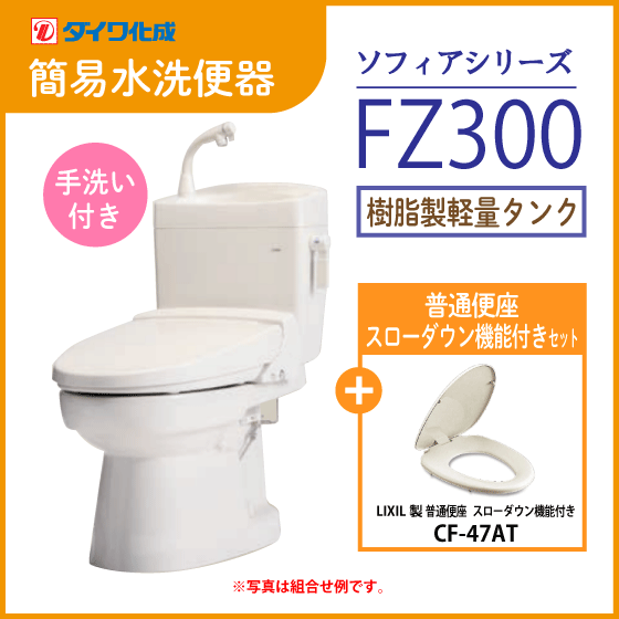 簡易水洗便器 簡易水洗トイレ「ソフィアシリーズ」 FZ300-H00(手洗付)・スローダウン機能付き普通便座セット ダイワ化成