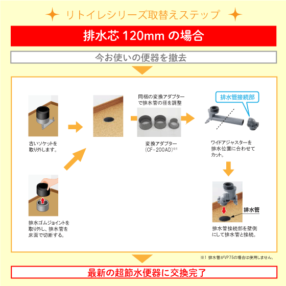 ・ ワイドアジャスター搭載で、市場のほとんどの便器から交換可能です。
