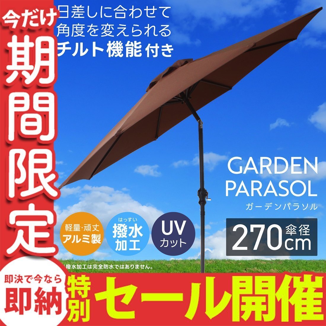 | 日差しを遮り、屋外スペースを憩いの場に! 組立簡単!ポールを繋げハンドルを回すことでパラソルを開閉できます。 日差しに合わせてパラソルの角度を変えられる「チルト機能」付き! ボタンを押すだけで左右どちらにも角度を調節できます。 パラソル生地は紫外線を約80%カットし、風通しのよいベンチレーション付きです。 また、撥水加工が施されており、急な雨にも安心です。 アルミ製の支柱で木製パラソルと比較し、軽くて水やサビに強く長くご使用いただけます! 【商品仕様】 カラー:ブラウン 素材:ポリエステル、スチール、アルミ 重量(約):4.6kg サイズ(約) ・使用時:傘幅270cm×高さ240cm ・収納時(パラソル):140cm×25cm ・収納時(ポール):長さ110cm ・ポール直径:3.8cm ※大型商品のため、特別中継料が適用されます。(北海道+1,100円/沖縄本島+2,200円/離島+2,200円) (270 2.7m ビーチパラソル 日除け 紫外線 日差し ベース スタンド 土台 セット 自立 チルト 角度調整 ガーデン ガーデニング ベランダ テラス アウトドア キャンプ BBQ レジャー ピクニック ビーチ 海 人気 おすすめ WEIMALL) |