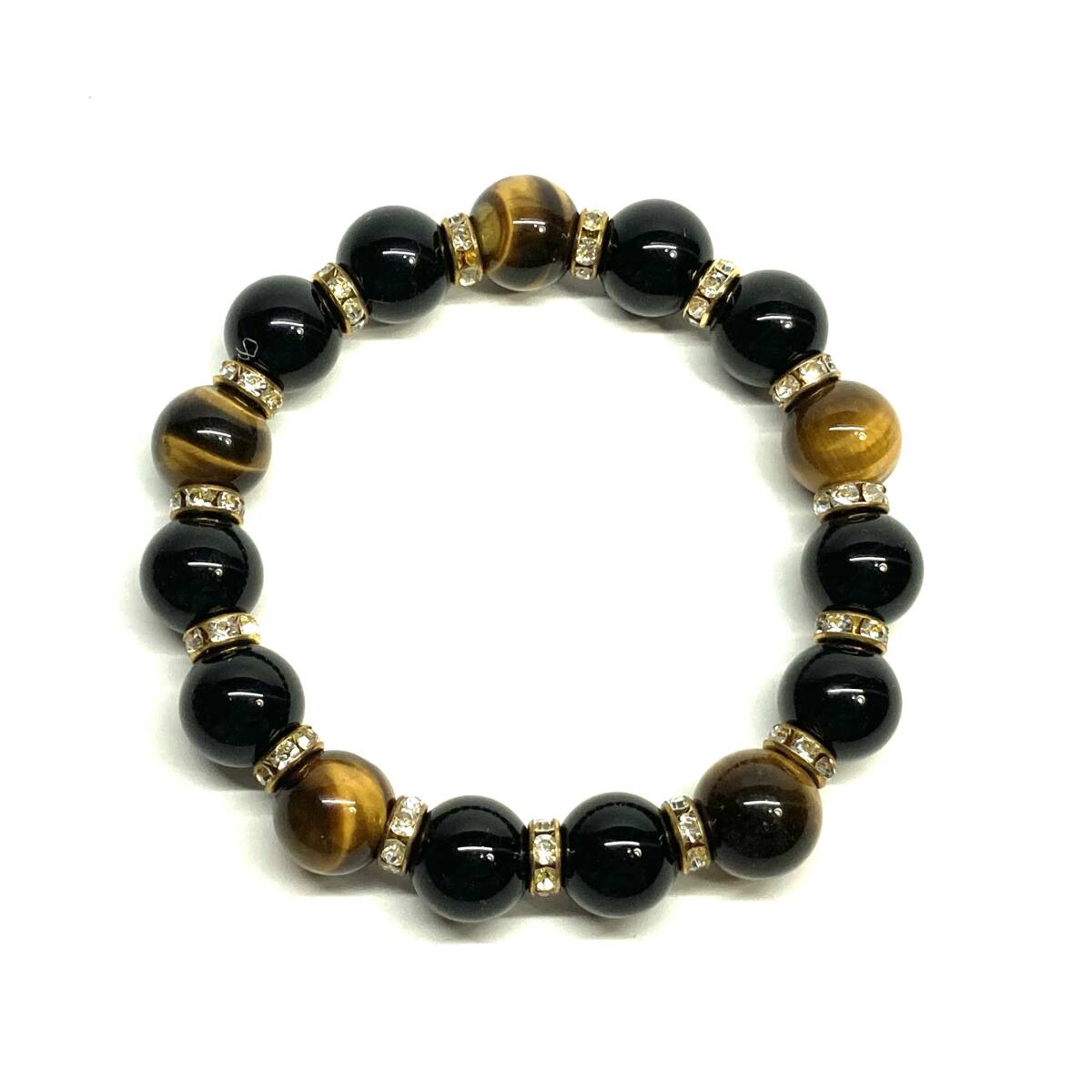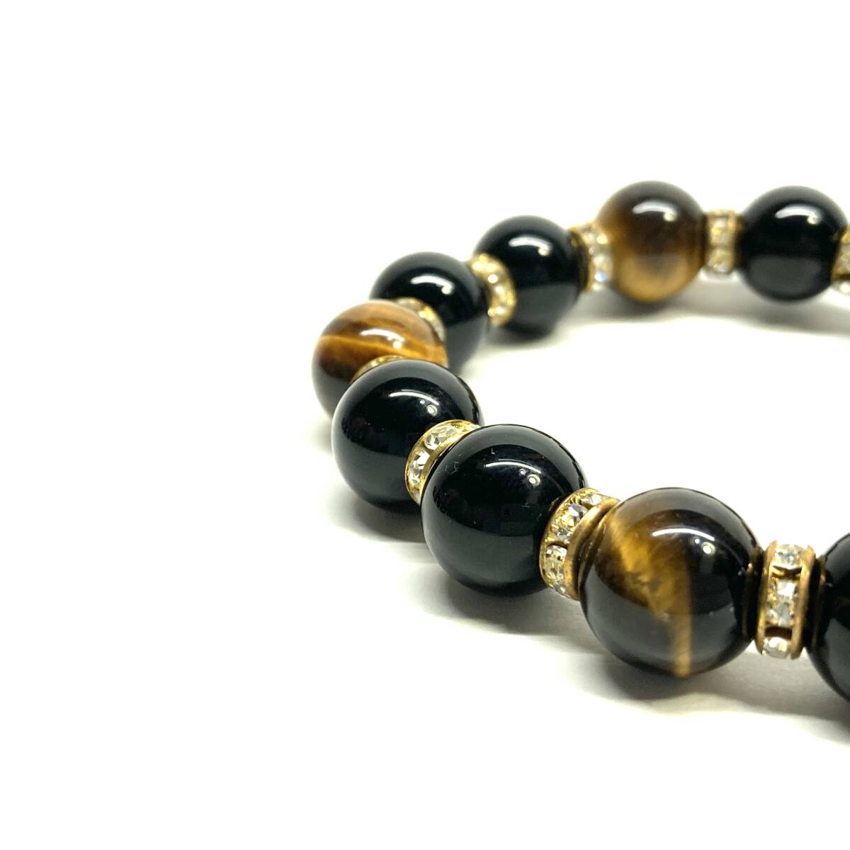 モリオン&タイガーアイ パワーストーン ブレスレット 天然石ブレス (ゴールド) 12mm 幸運 開運 メンズ 男性♪