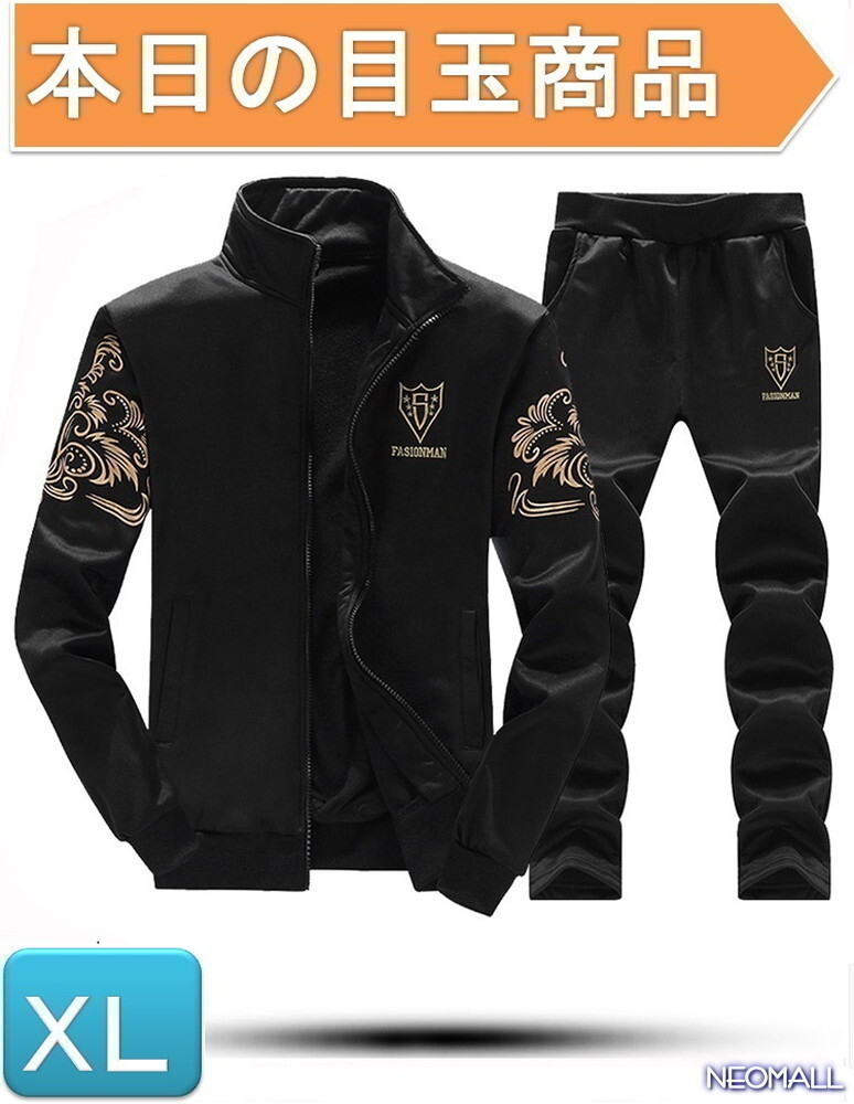 【今日の目玉】メンズセットアップ 上下セット ☆300 ブラック XLサイズ ジャージ スウェット お兄系 部屋着 おしゃれ