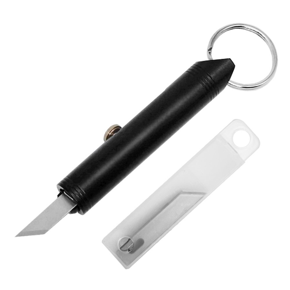 ◆ミニカッターナイフ 替え刃付属 全長58mm キーリング付 小型ナイフ 金属ボディ ロック機構 カッター刃交換可 携帯便利 常備 キーホルダー型 ペーパーナイフ 小刀【ブラック】 MKS805