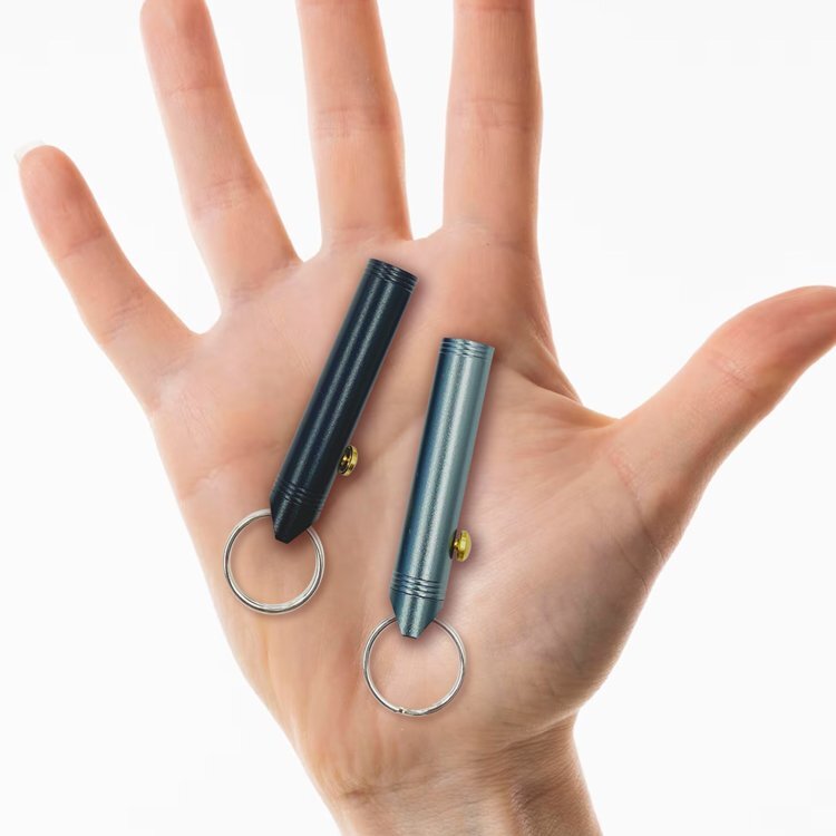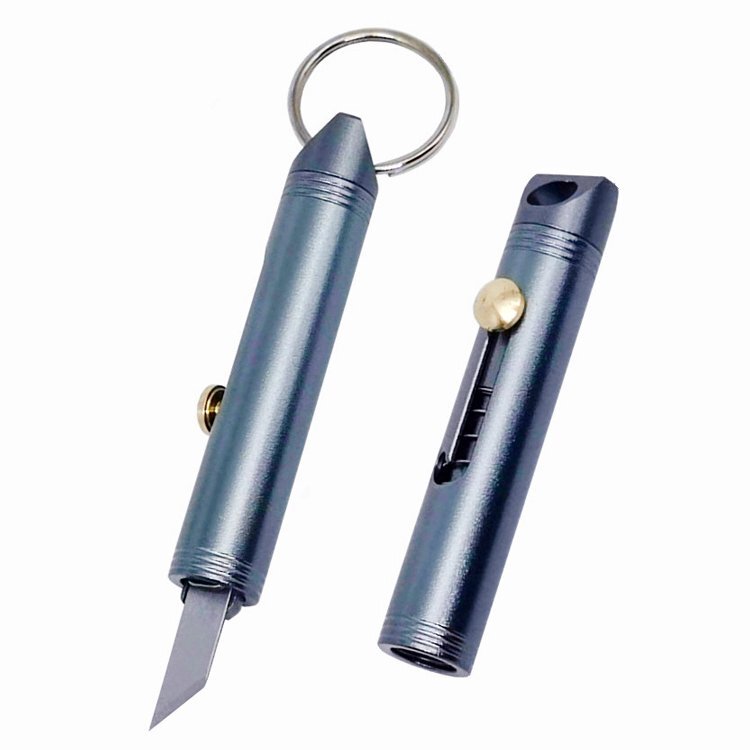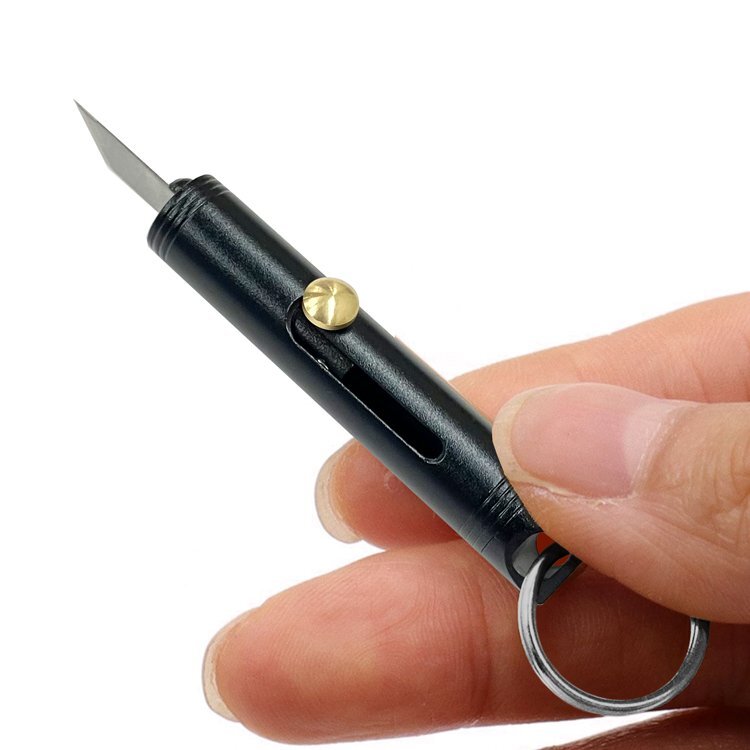 キーリング付きで常備しやすい、全長約58mmのキーホルダー型ミニカッターナイフです。