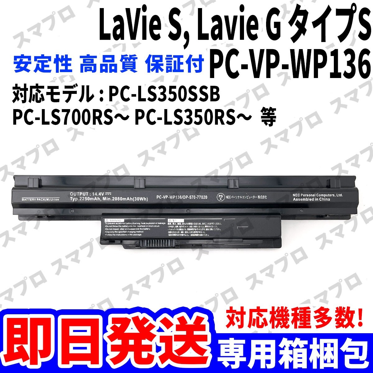 NEC LaVie S Lavie G タイプS PC-LS350SSB バッテリー PC-VP-WP136 ・バッテリー本体 ※商品画像はイメージとなります。 |