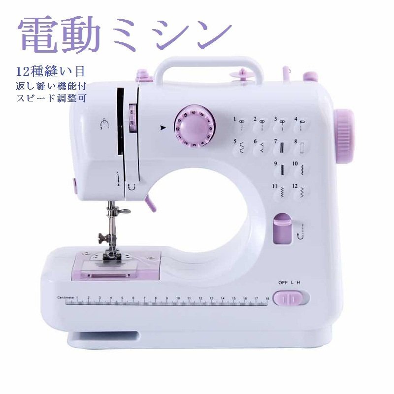 ミシン コンパクト 家庭用電動ミシン 初心者利用可 操作簡単 12種縫い目 返し縫い機能付 スピード調整可