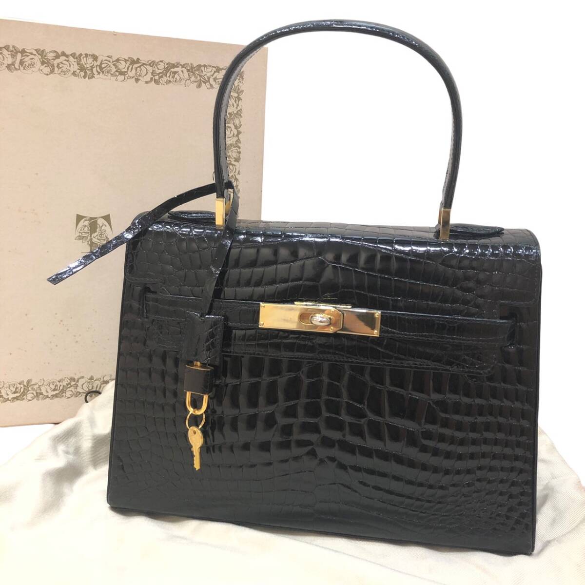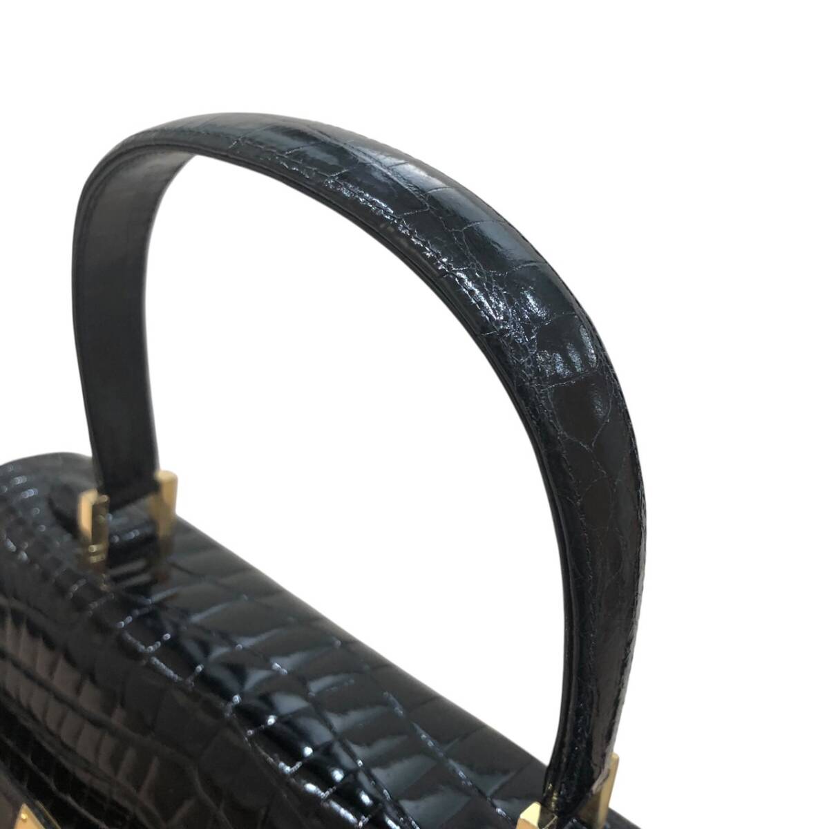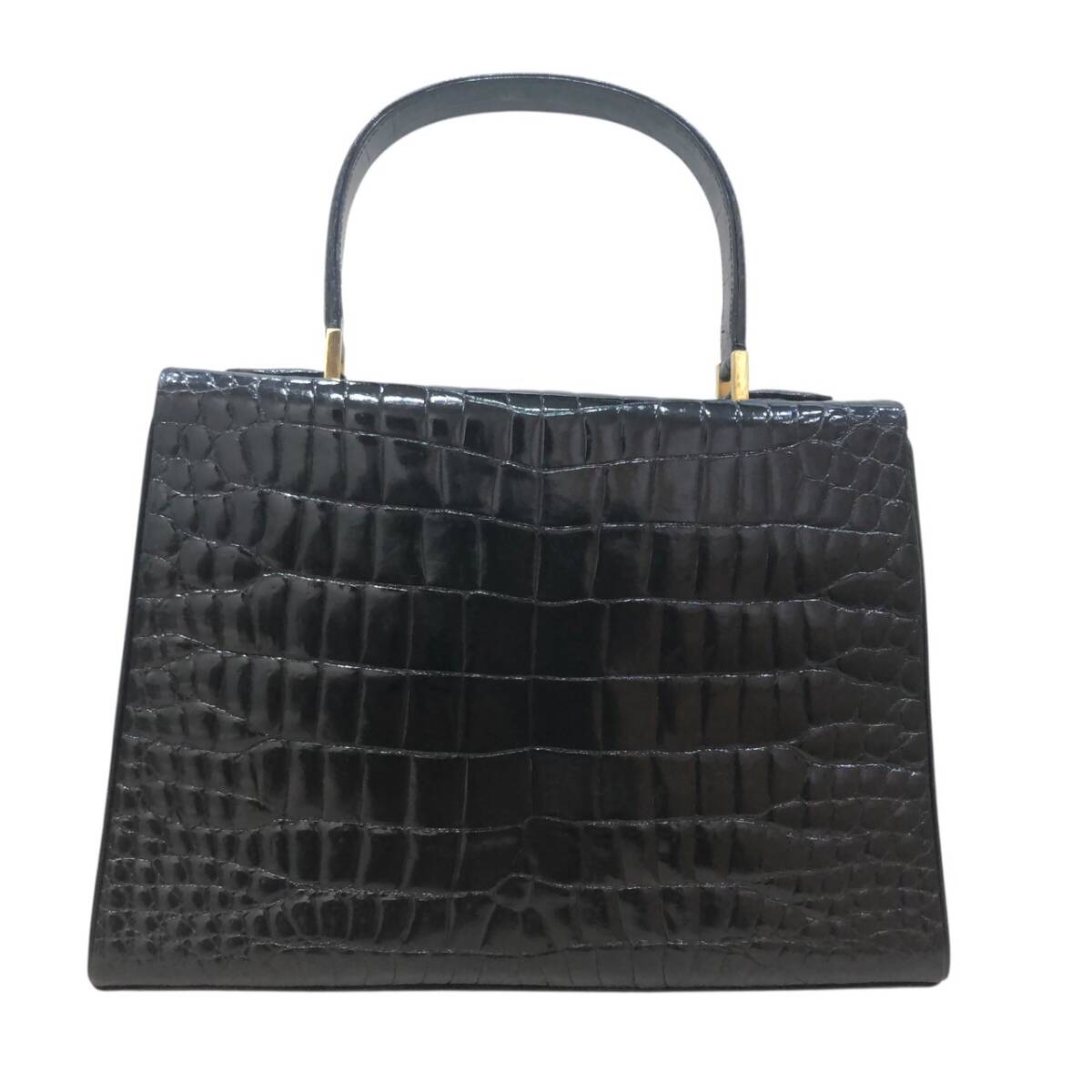 | ZAGLIANI ザリアーニ クロコダイル ターンロック ハンドバッグ 黒 |
