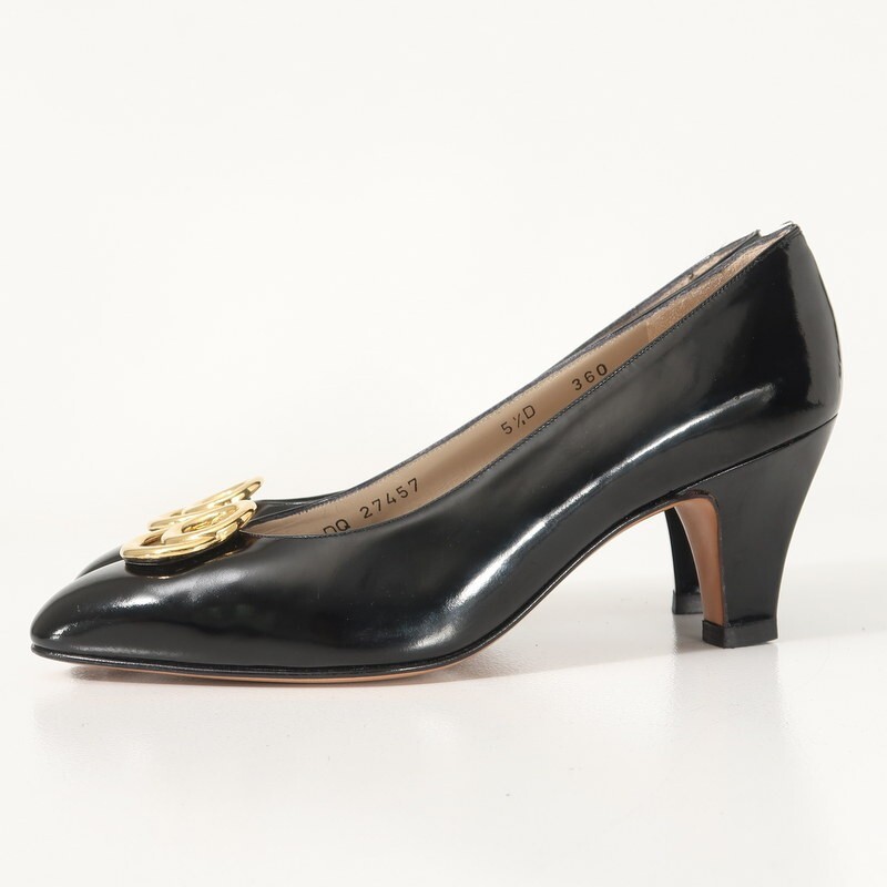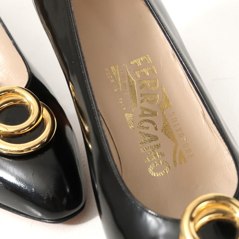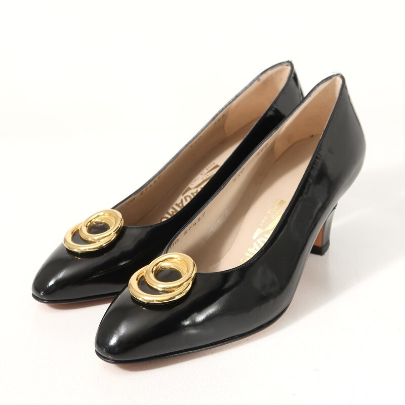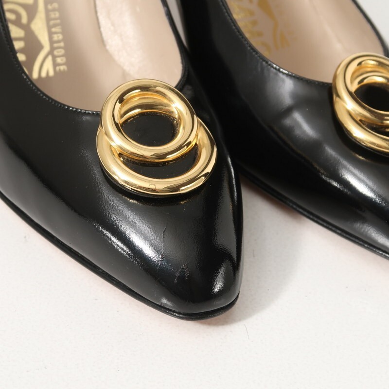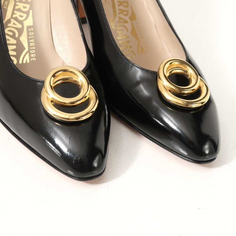 | MI3431*イタリア製 サルヴァトーレフェラガモ リング金具 レザーパンプス シューズ 5.5D(22.5cm相当) 靴 ブラック | |||