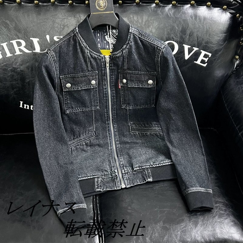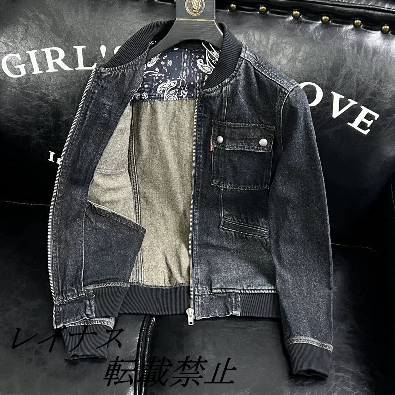 ■商品説明 : スタンドカラー&スリムフィット メンズ ビンテージ風ウォッシュドデニム