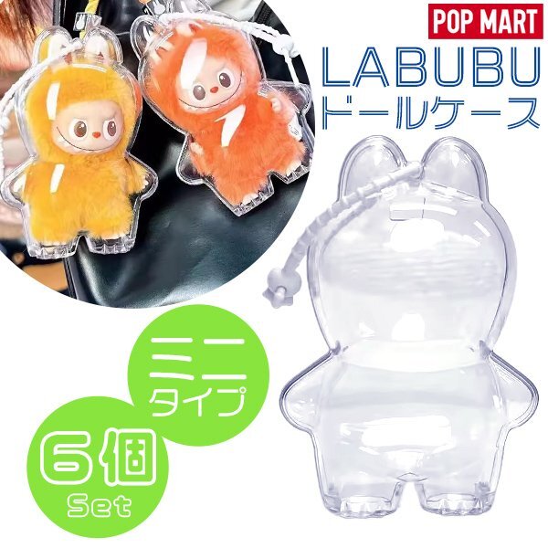 LABUBU 保護ケース ラブブMiniタイプ 6個 ストラップ付き/ぬいぐるみ透明ケースプロテクター イニシャルポップマートPOP MART1/2/3世代対応