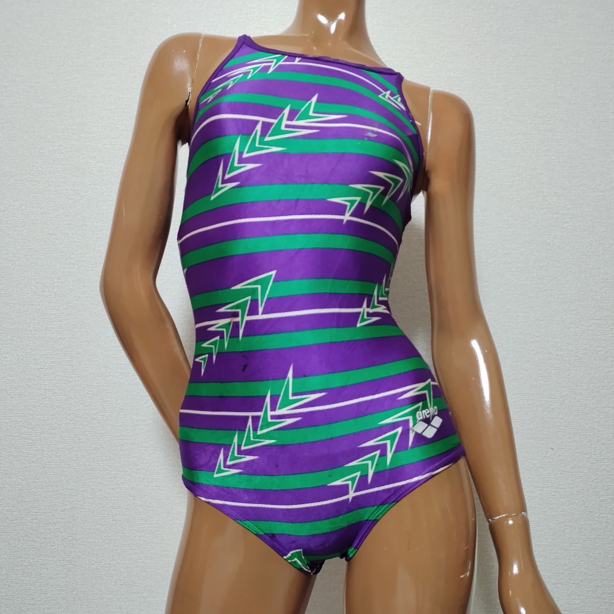 25*アリーナarena女子競泳水着(Lサイズ)★光沢紫パープル緑グリーン★大きいサイズ男性も