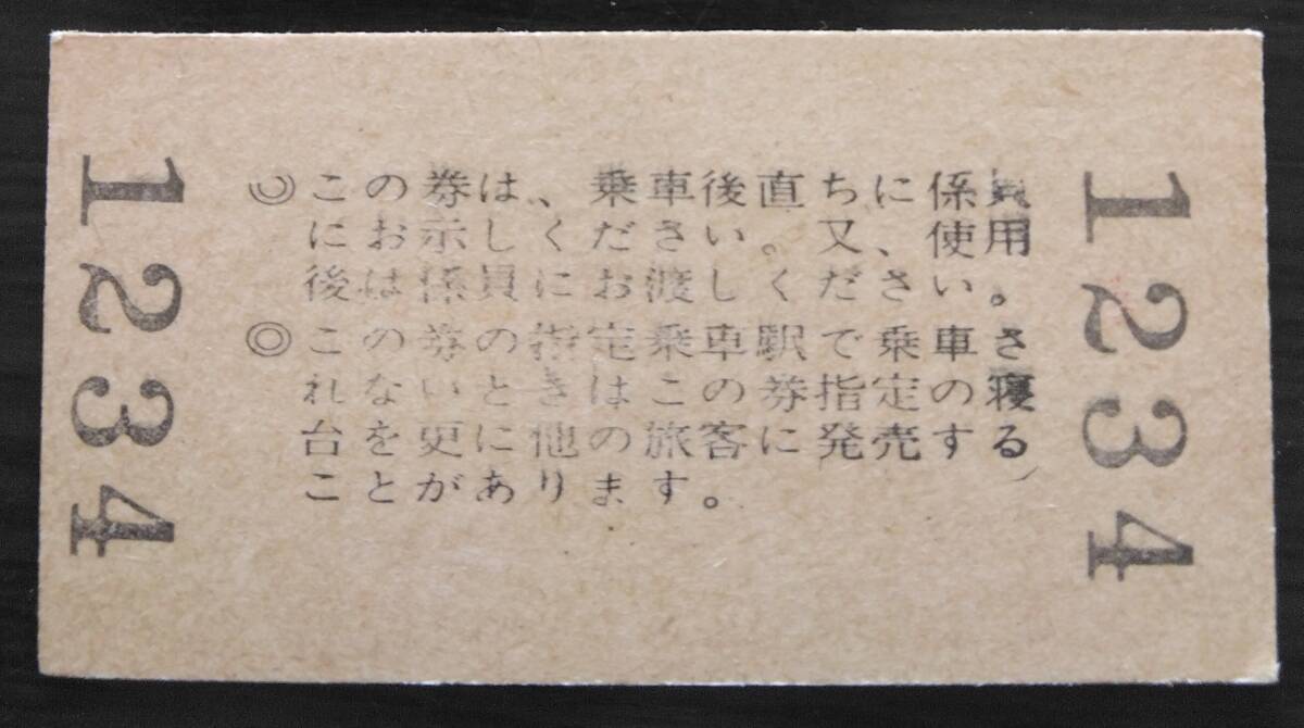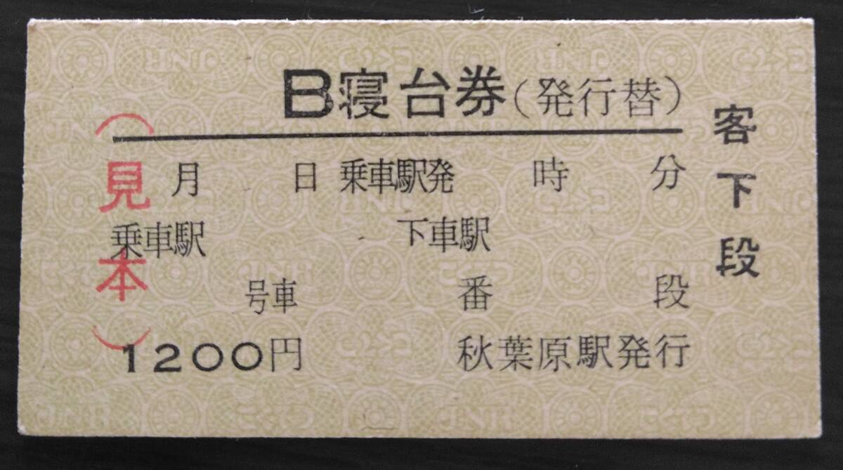 【見本】国鉄 B寝台券(発行替・客下段専用券)  →  秋葉原駅発行 NO.1234