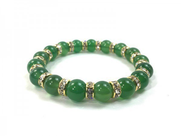 こちらは、10mm玉の緑瑪瑙を使用したパワーストーンブレスレットです。間にはロンデルを挟み高級感あるブレスレットに仕上げています。石大きさは腕にも馴染みやすいように10mm玉を使用して、サイズは内径約18cmです。(サイズ調節も無料で承っています。サイズ変更の場合は落札後、取引ナビにてご一報くださいませ。) 数に限りがございますので気になる方はお早めにどうぞ。