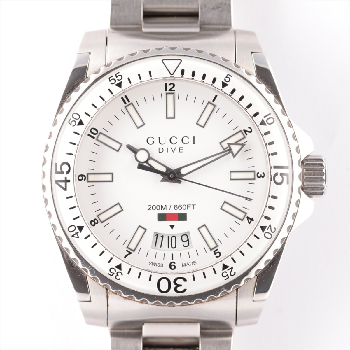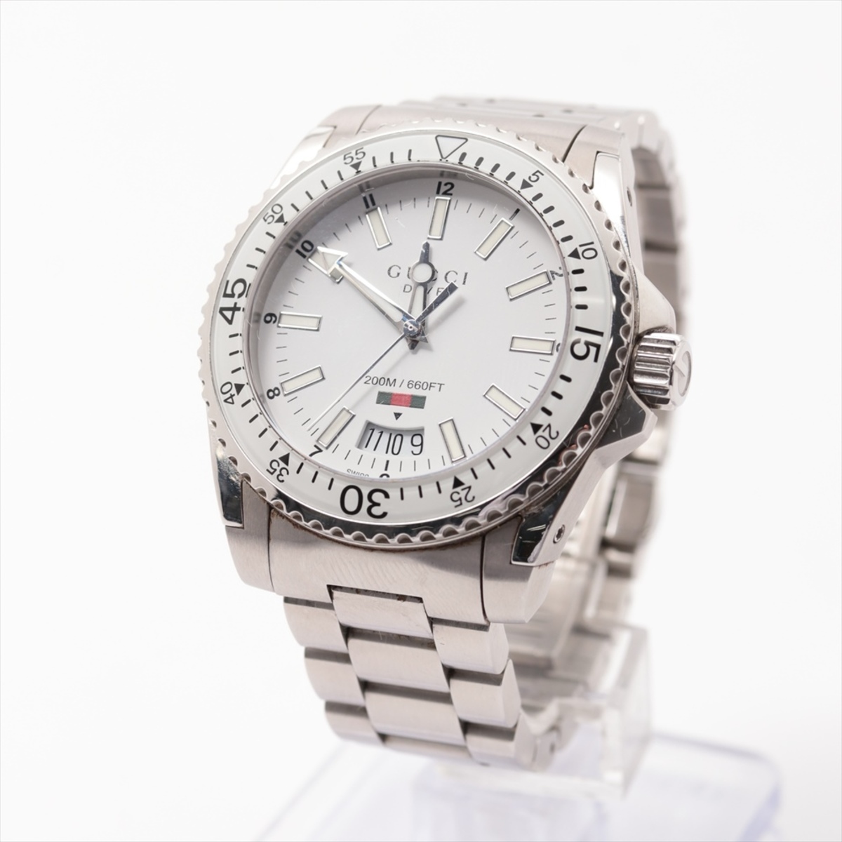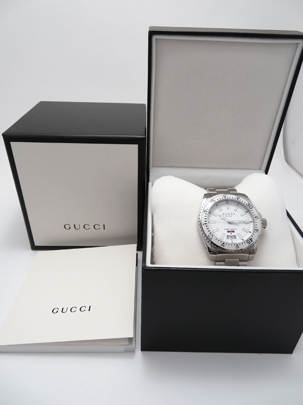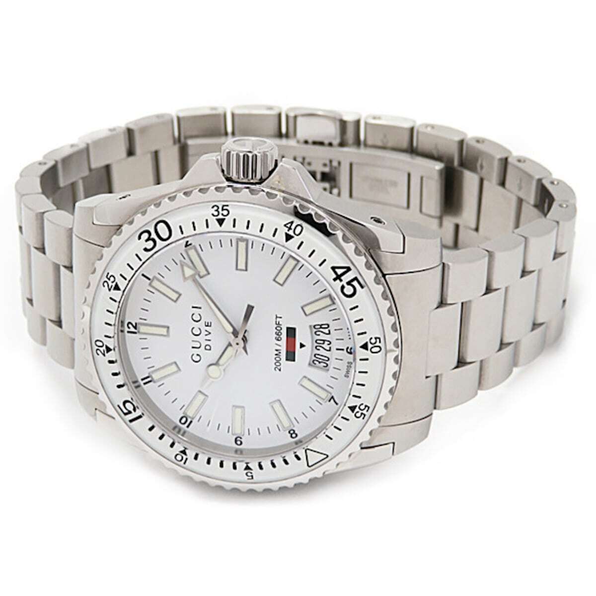 極美品 グッチ ダイブ DIVE メンズ 40MM クォーツ ホワイト文字盤