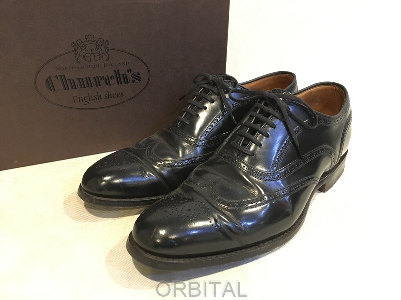 二子玉) Church's チャーチ ウィングチップ レザーシューズ 四都市 メンズ ブラック 革靴 7.5 26cm相当 イングランド製