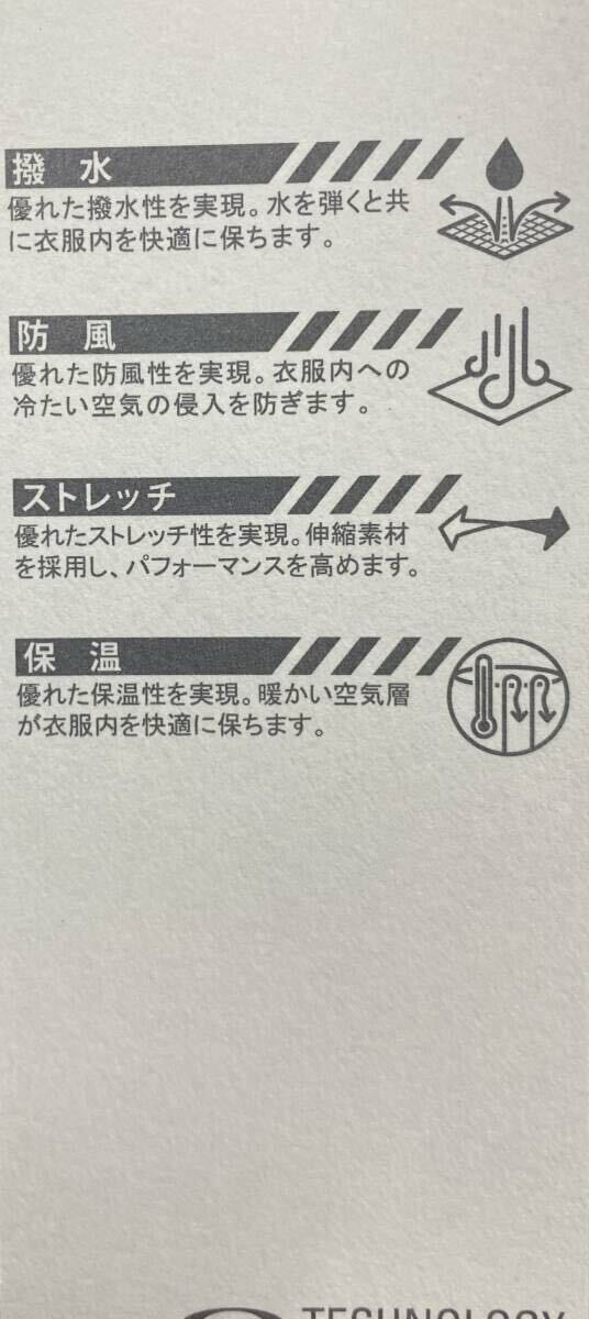 ●機能/撥水、防風、ストレッチ、保温、UPF50+