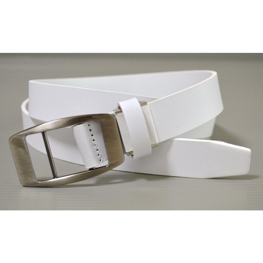 好評の38mmミリ帯幅に続く30ミリの細幅タイプです。 通常のベルトでは難しかった ピンもベルト穴がなく帯をバックルに通してとめる斬新ユニークな作りとなっています。 そのため ウエストが増しても問題ありません。 シンプルなバックルを使用していますのでビジネス/カジュアル/スポーツにも兼用で使える万能ベルトです。 革は厚みのあるしなやかな1枚の革を使用しています。