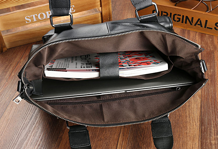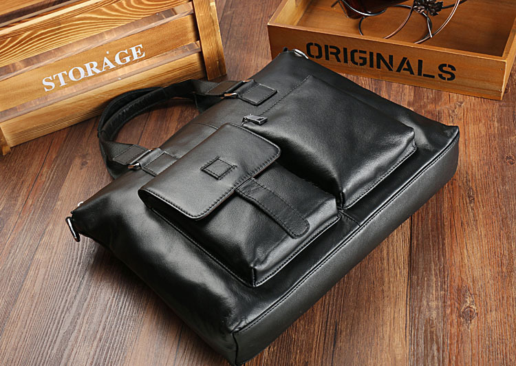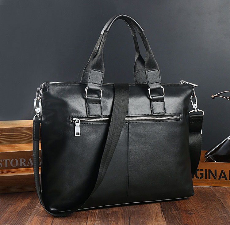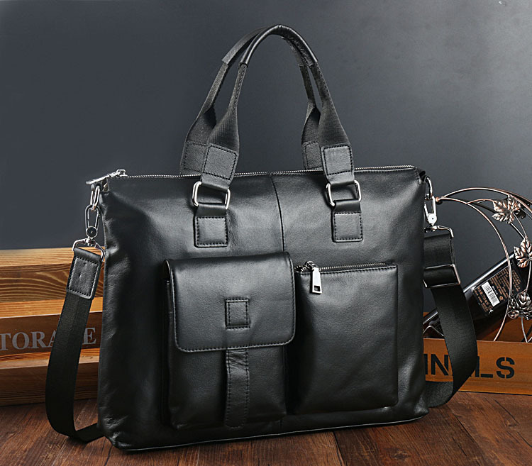 送料コミコミ☆ メンズ 本革 ビジネスバック ブラック 牛革 ブリーフケース 書類カバン 鞄 オフィス 通勤【n215】