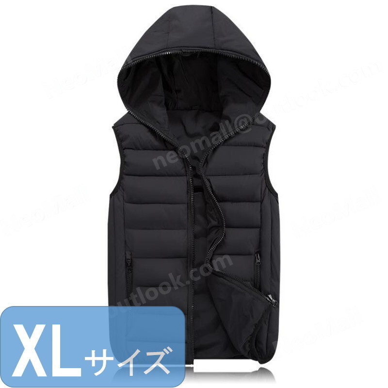 シンプルな メンズ ダウンベスト 003 ブラック XLサイズ 中綿ダウン 中綿ベスト キルティング アウター 防寒 秋冬 暖かい