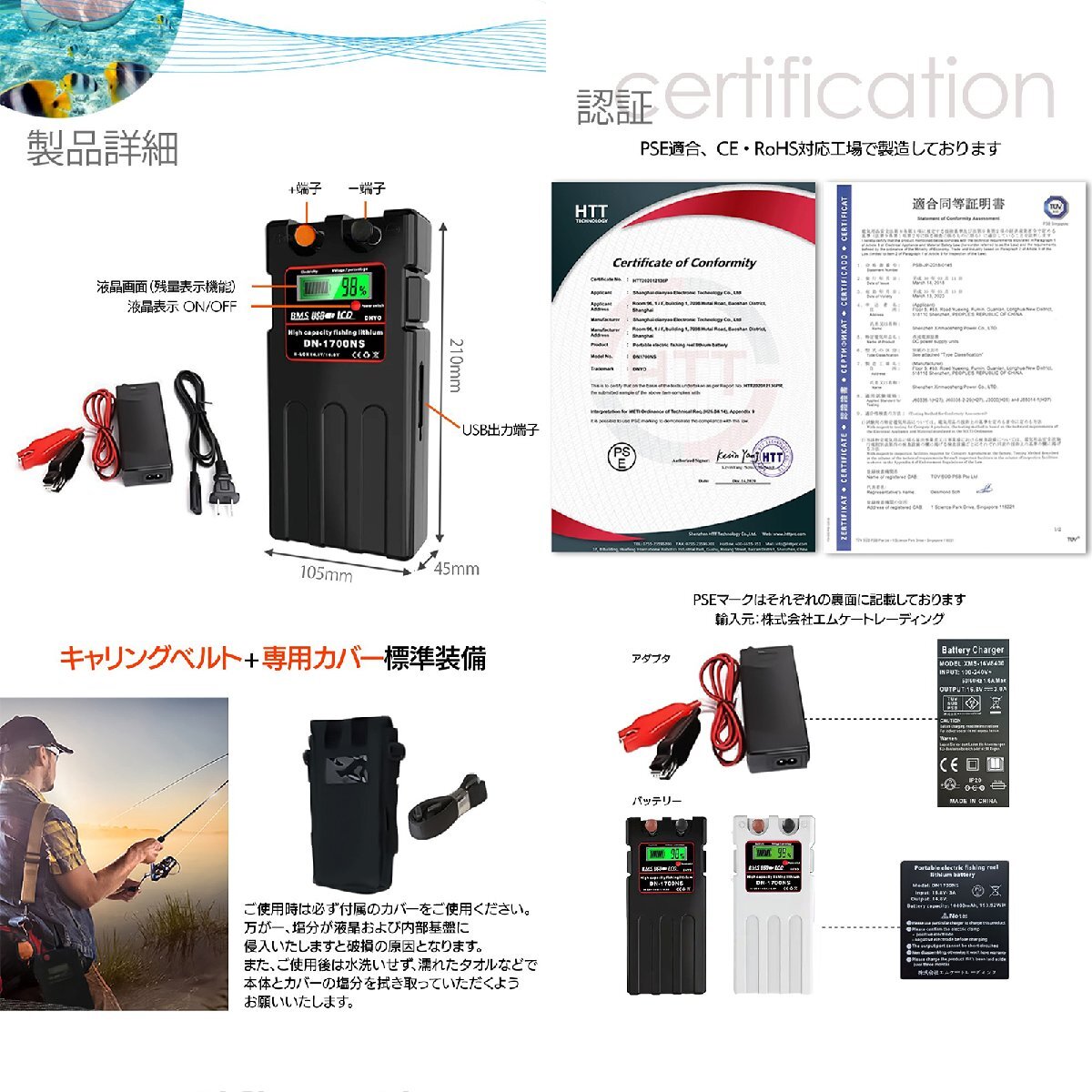 型番:DN-1700NS 電圧:定格14.8V/最大16.8V 容量:14000mAh サイズ:213mm×104mm×45mm 重量:1.2kg 認証:安心のPSE・CEマーク取得済 安心のパナソニック製セル搭載!! ■対応機種:ダイワ シマノなどの電動リール ※定格14.8V/最大16.8Vが対応している事をご確認ください。 |