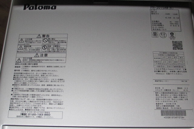 Paloma パロマ ガス給湯器 PH-2015AW LPガス 2024年製 リモコン付き | |||