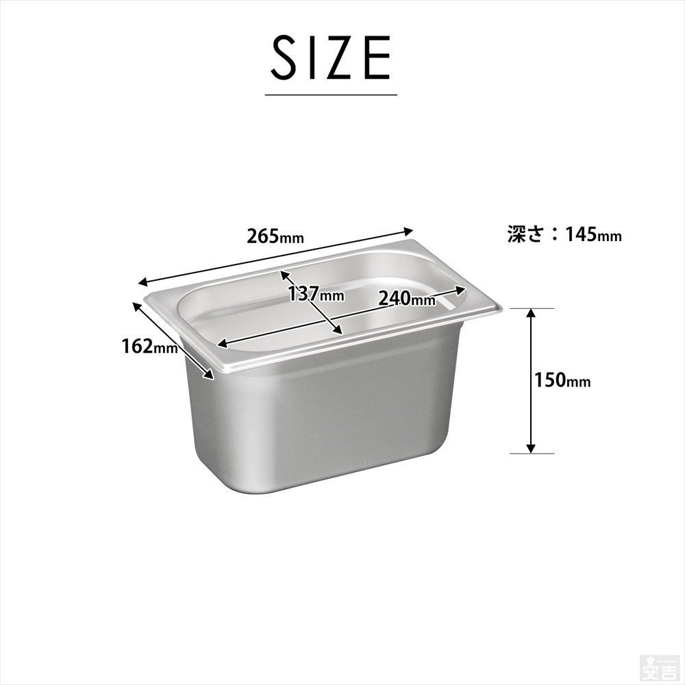 | 説明 | 角がアール加工されており、洗いやすく汚れがたまりにくいシンプルなデザイン。 ステンレス製の衛生的なホテルパンです。 |