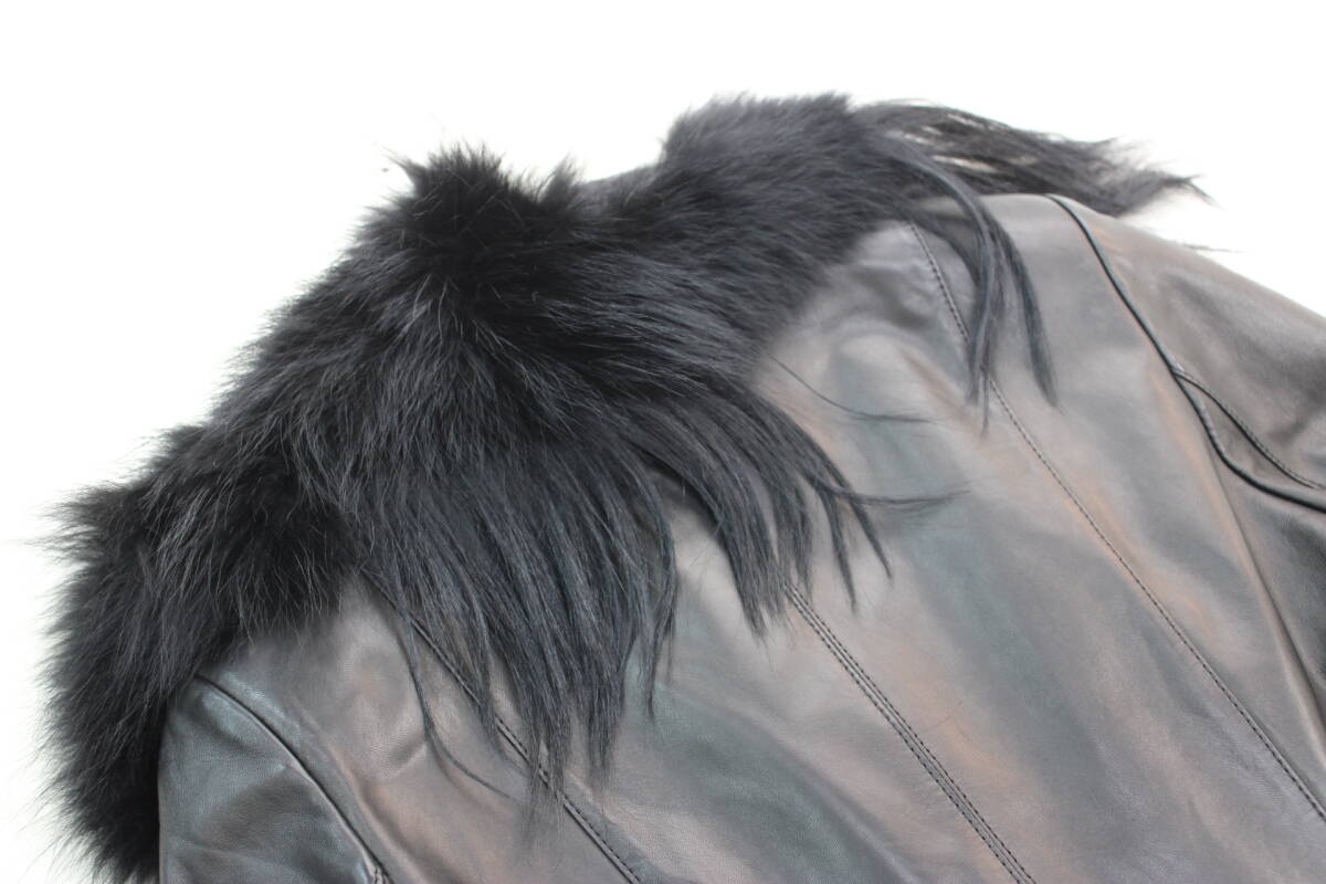 6705 新品タグ付き フォックスファー付き高級羊革レザージャケット ブラックLサイズ