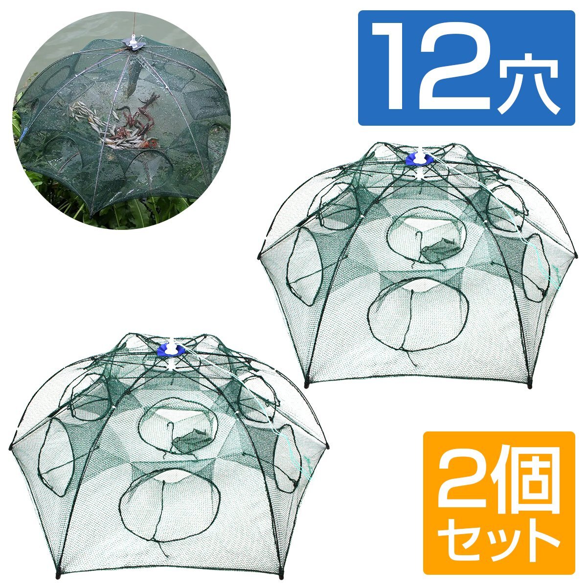 (L) 2個セット 12穴 仕掛け網 タコ ウナギ アナゴ エビ カニ 狙い 捕獲網 六ツ手網 角網 収納 折り畳み式 穴子 魚網 漁具