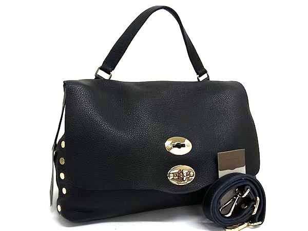 1円 ■極美品■ ZANELLATO ザネラート ポスティーナ レザー 2WAY ショルダーバッグ ハンドバッグ レディース ネイビー系 FT0521