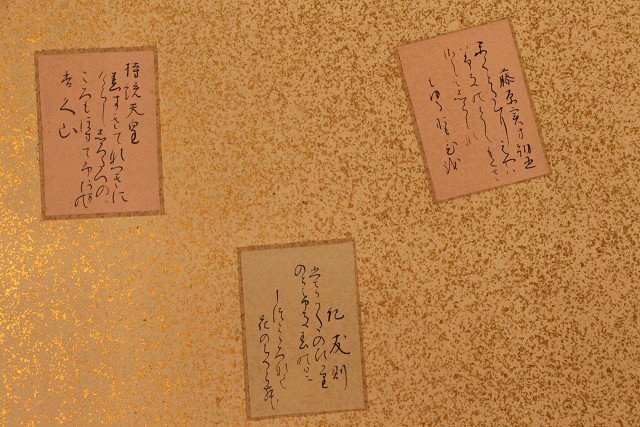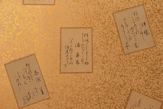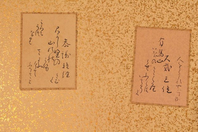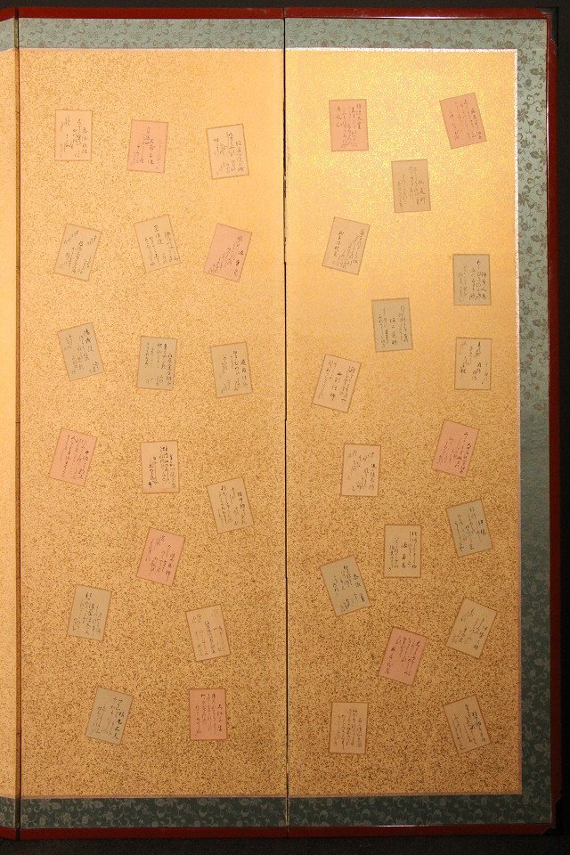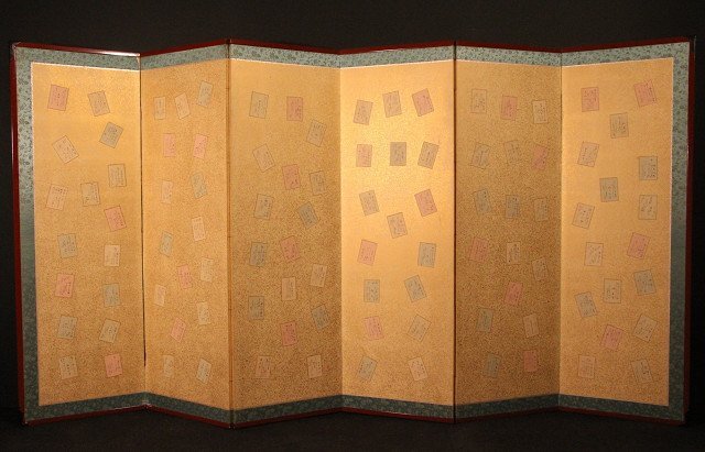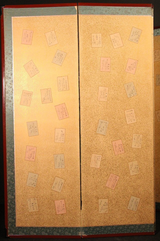 | ◇商品名◇ | ☆吉宗☆百人一首 貼り混ぜ屏風 六曲半双 (検)金屏風 衝立 無落款 | ||