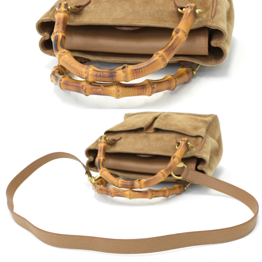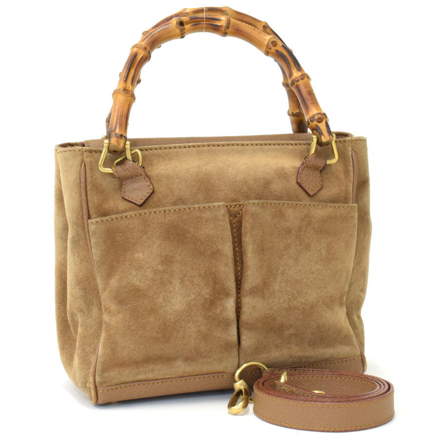 1円◆美品/GUCCI/グッチ/2way/ハンドバッグ/ショルダー/000・122・0316/バンブー/スエード/レザー/ブラウン◆E.Csl.zE-21