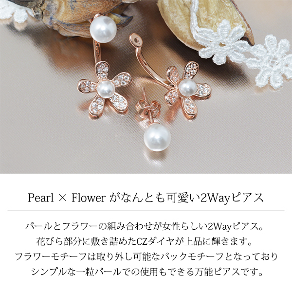 2WAYパールフラワーピアス