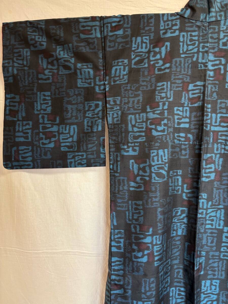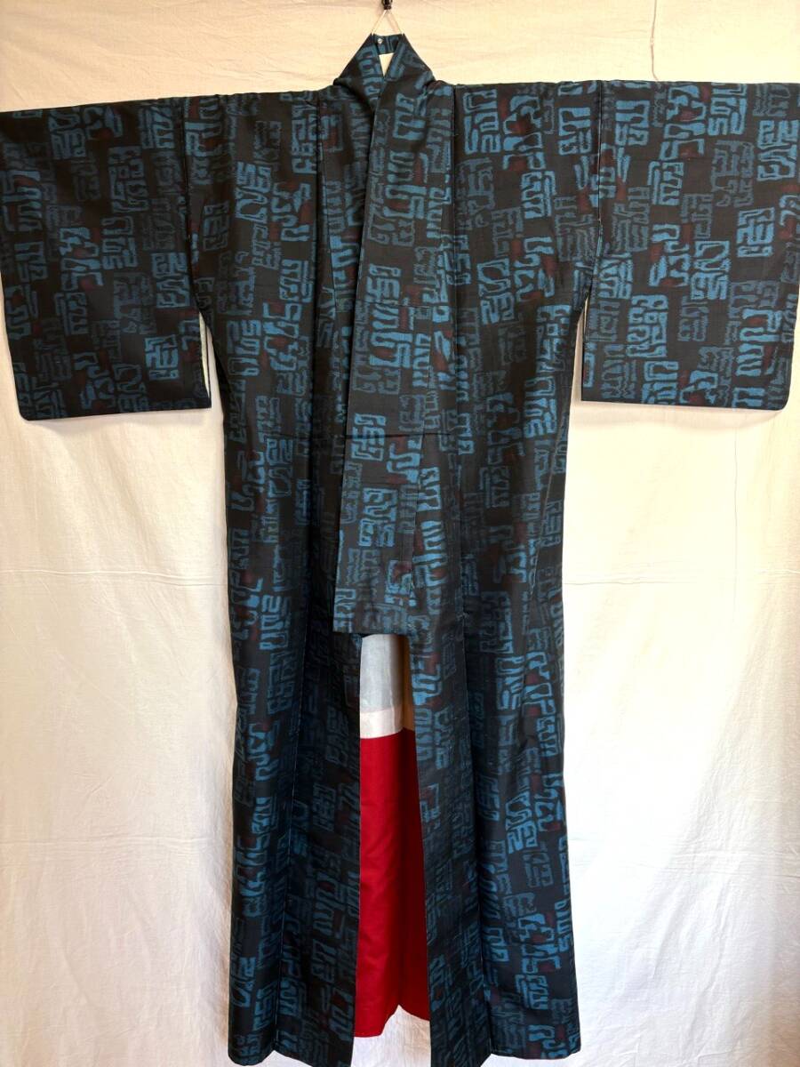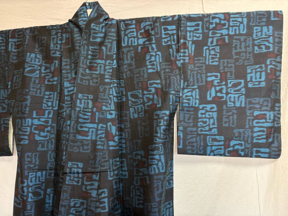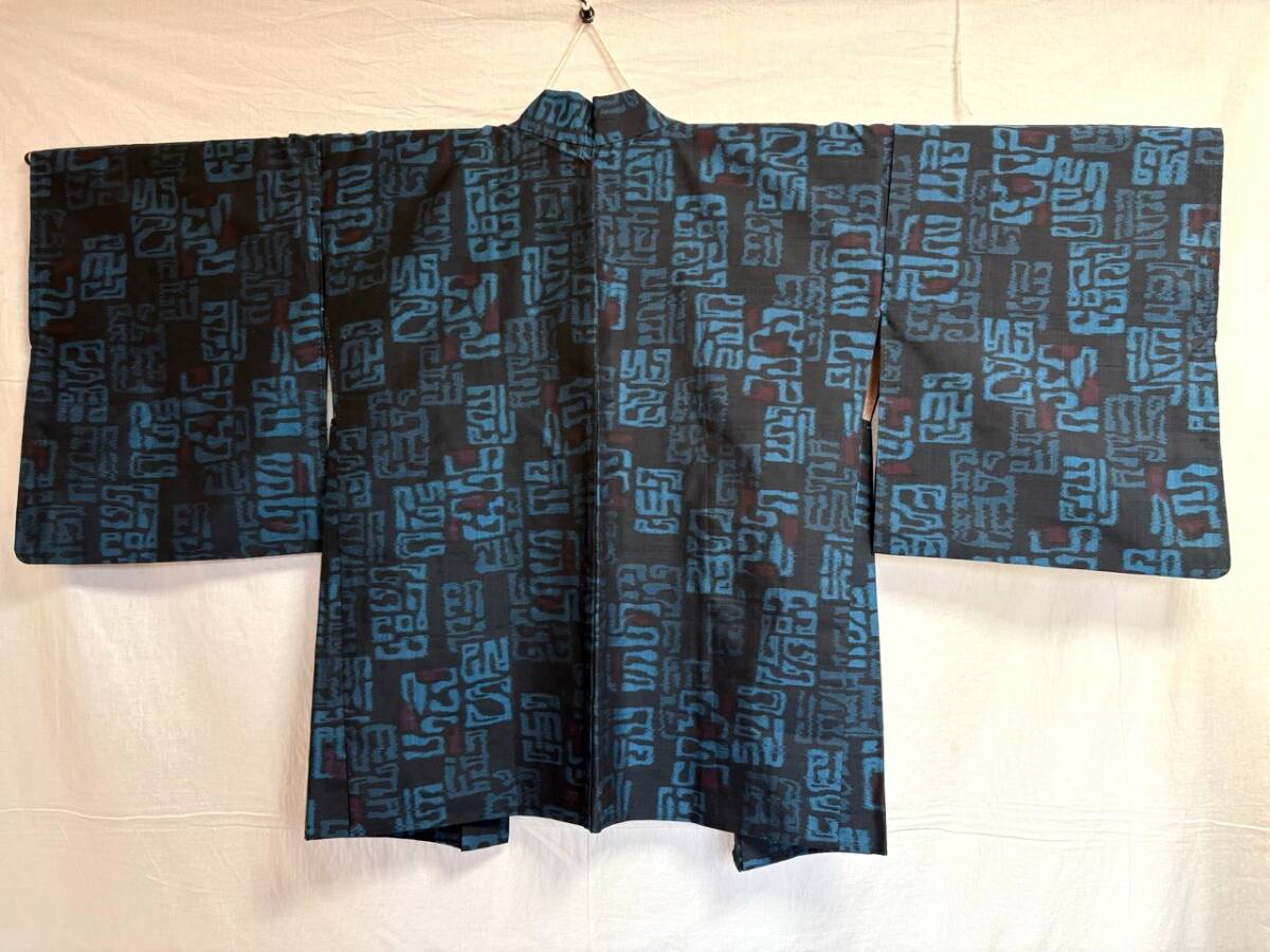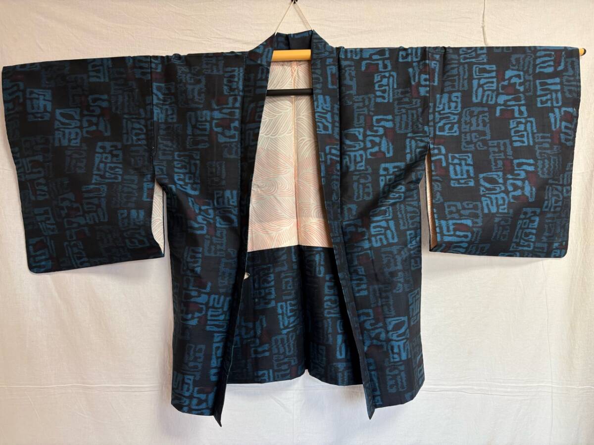 0033★着物*羽織*二点セット*同柄*黒*青*ミックス*和装*和服*和柄*レトロ*アンティーク*和裁*生地*布*レディース*女性★