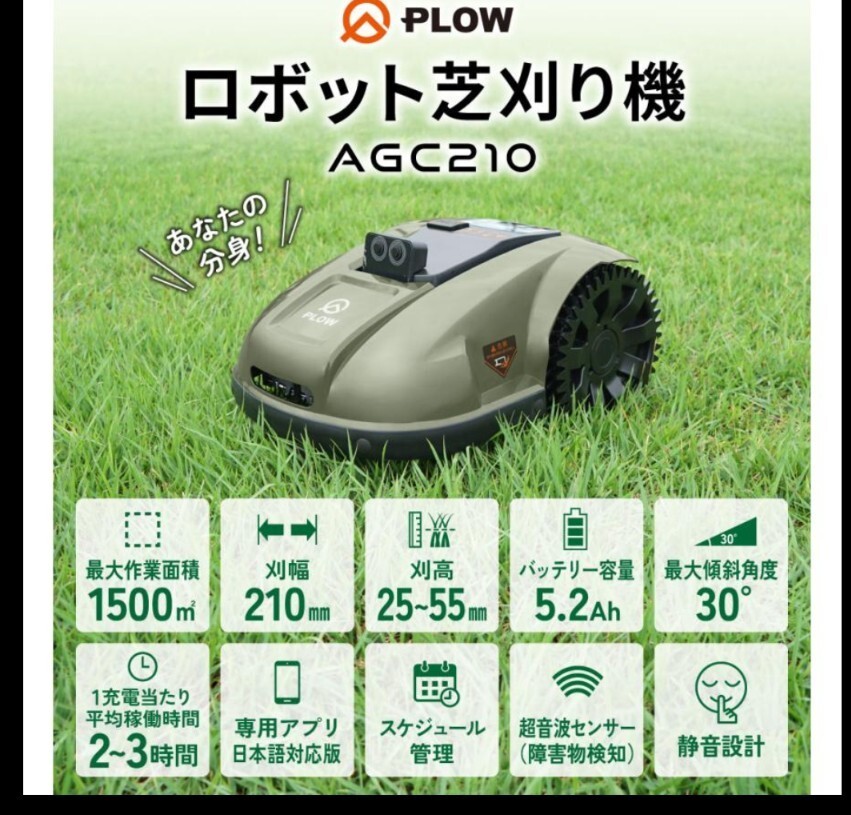 PLOW ロボット芝刈機 AGC210 スケジュール管理 遠隔操作 スマホ アプリ対応