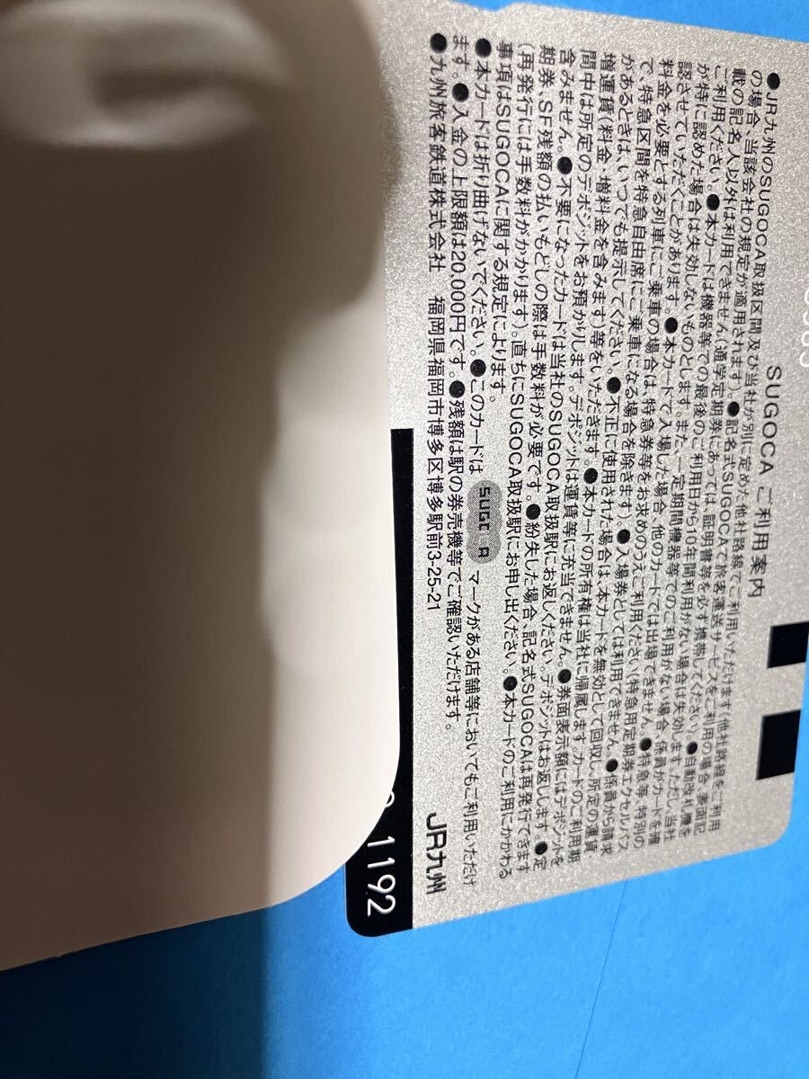無記名式のSUGOCAカード500円分(デポジット500円+チャージ0円)です。