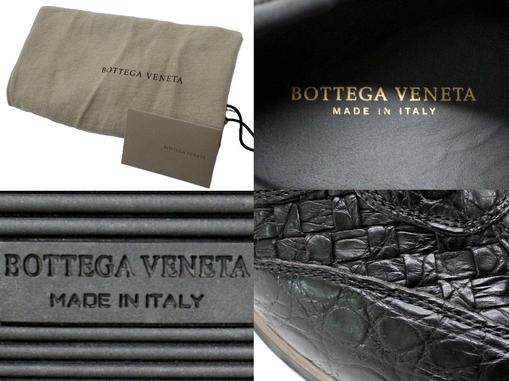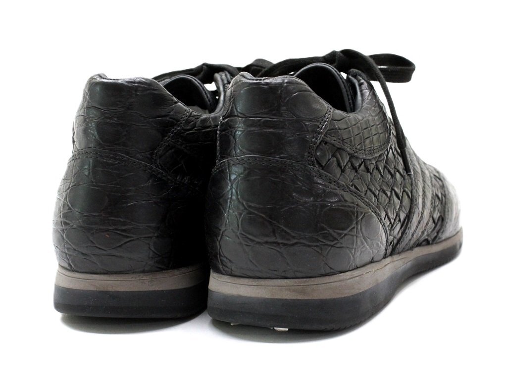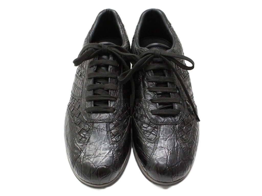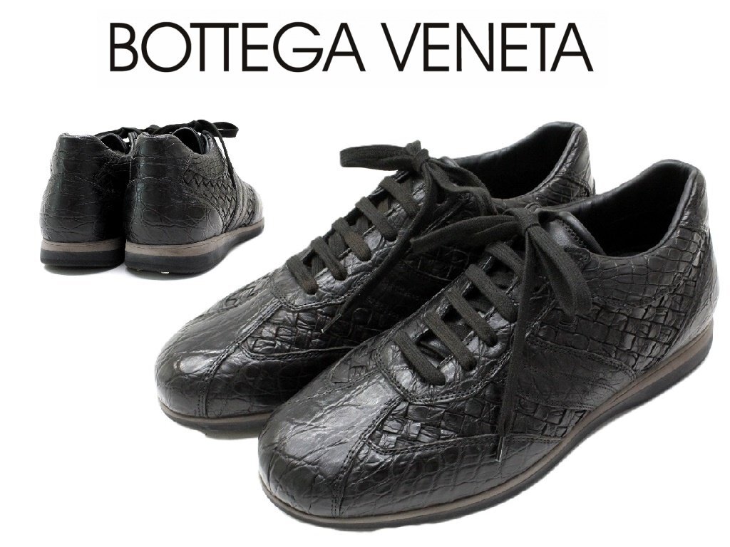 93万新品◆41=26cm◆ボッテガヴェネタ クロコダイル イントレチャート レースアップレザースニーカーシューズ ブラック黒