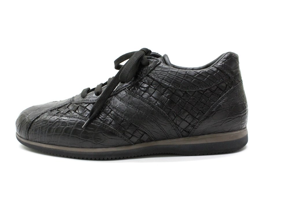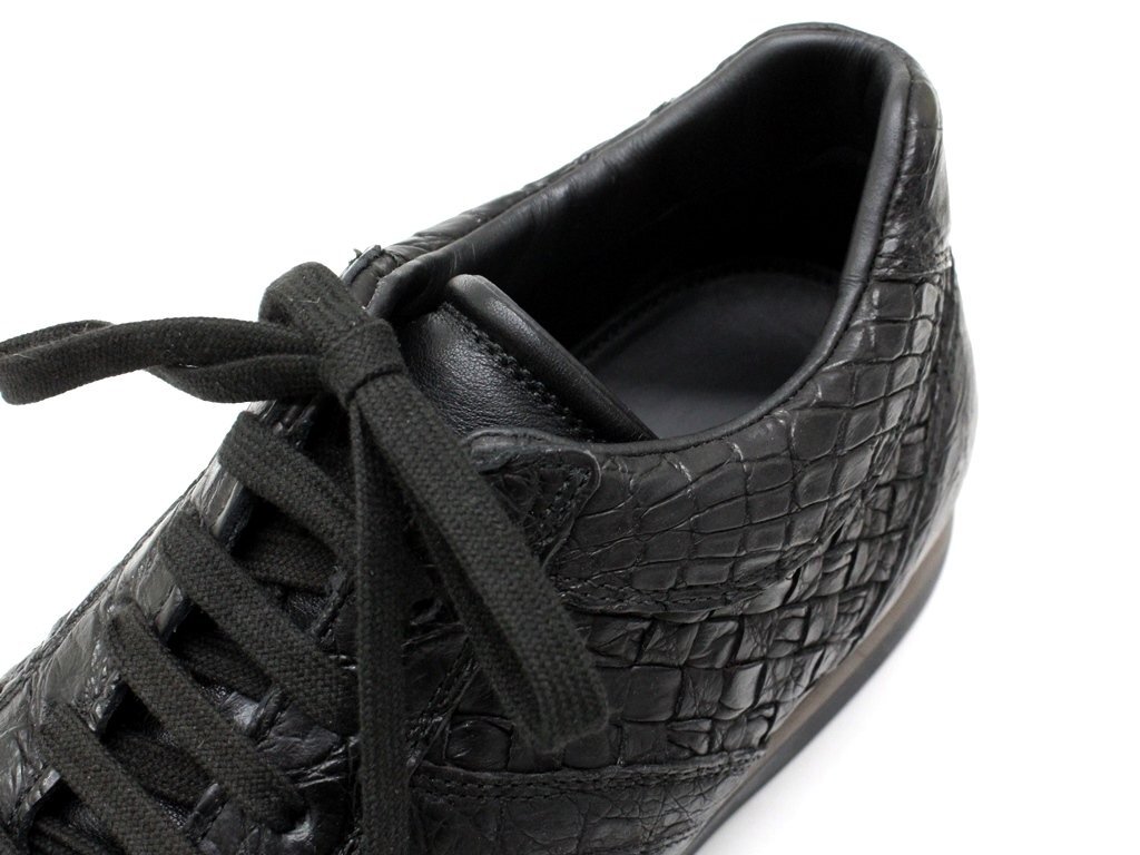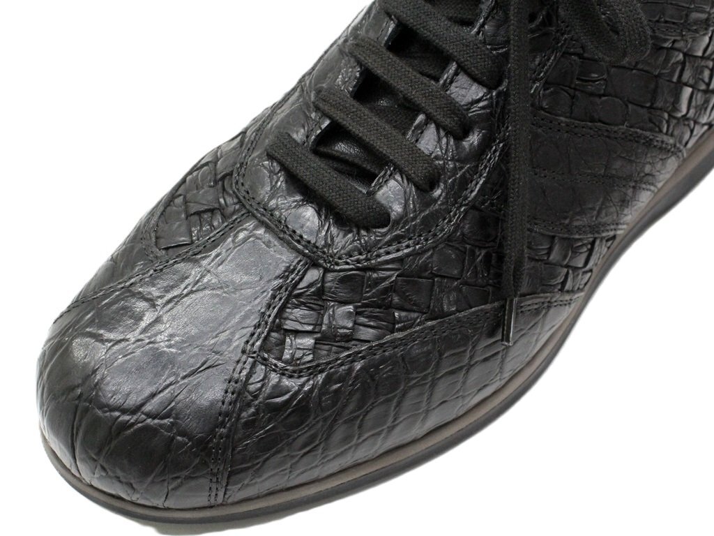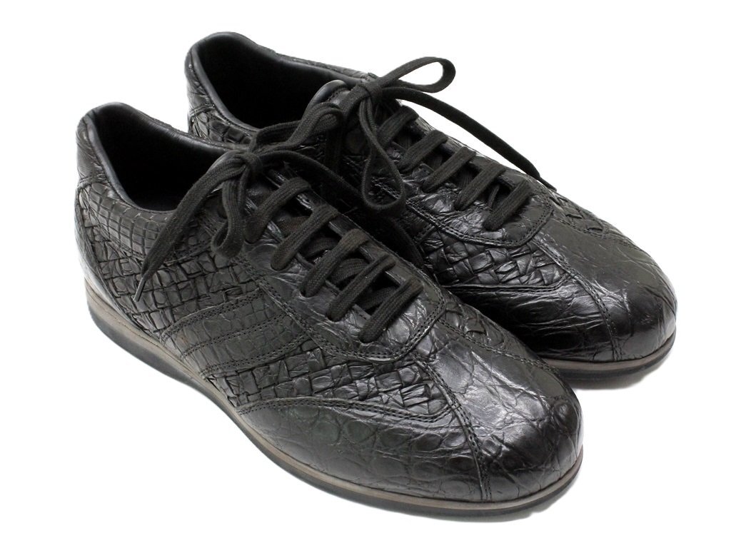 93万新品◆41=26cm◆ボッテガヴェネタ クロコダイル イントレチャート レースアップレザースニーカーシューズ ブラック黒