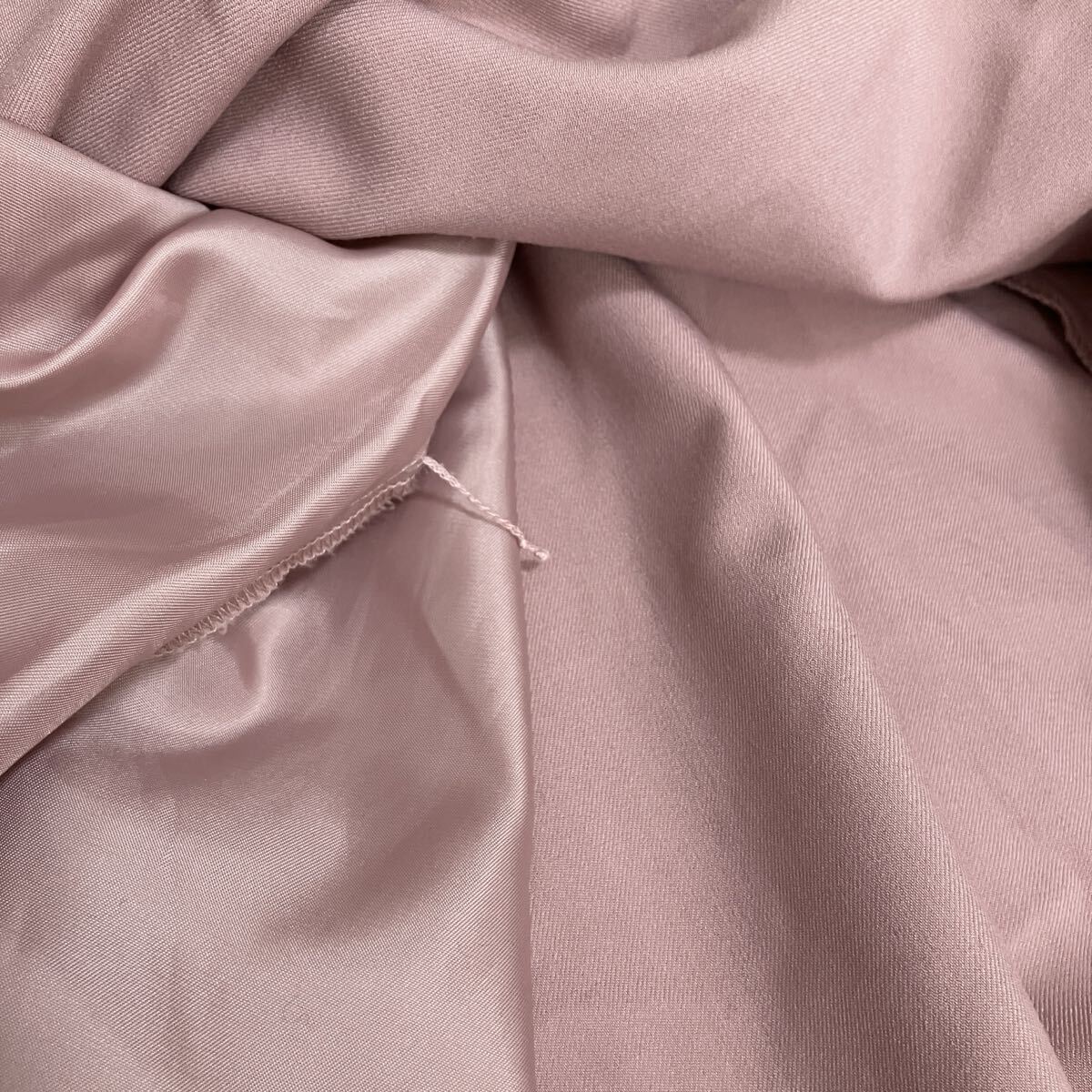 ・裏地と表地を留めている糸が、片方切れています。写真7枚目をご確認くださいませ。