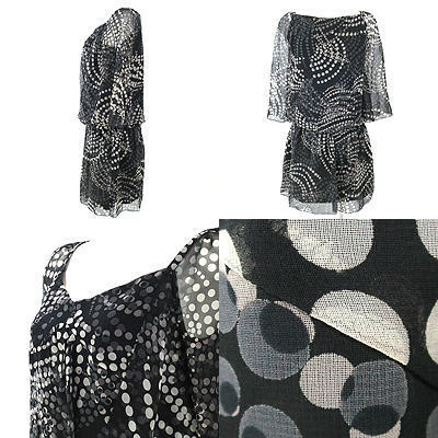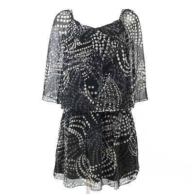 | モノトーンカラー使いのプリント柄 身頃部分は裏地あり、袖部分は少し透け感があり お呼ばれ事やパーティー等でもお使いいただけるアイテムです。 バスト約88cm 着丈約72cm 裄丈約65cm 【サイズ】:(36) 【素 材】:(ポリエステル100% 裏ポリエステル100%) 【 色 】:(黒系ドット柄) 【程 度】:(AB) **管理番号** 2507-20150430-014 340 035 | ||||