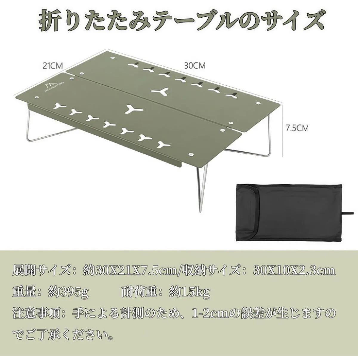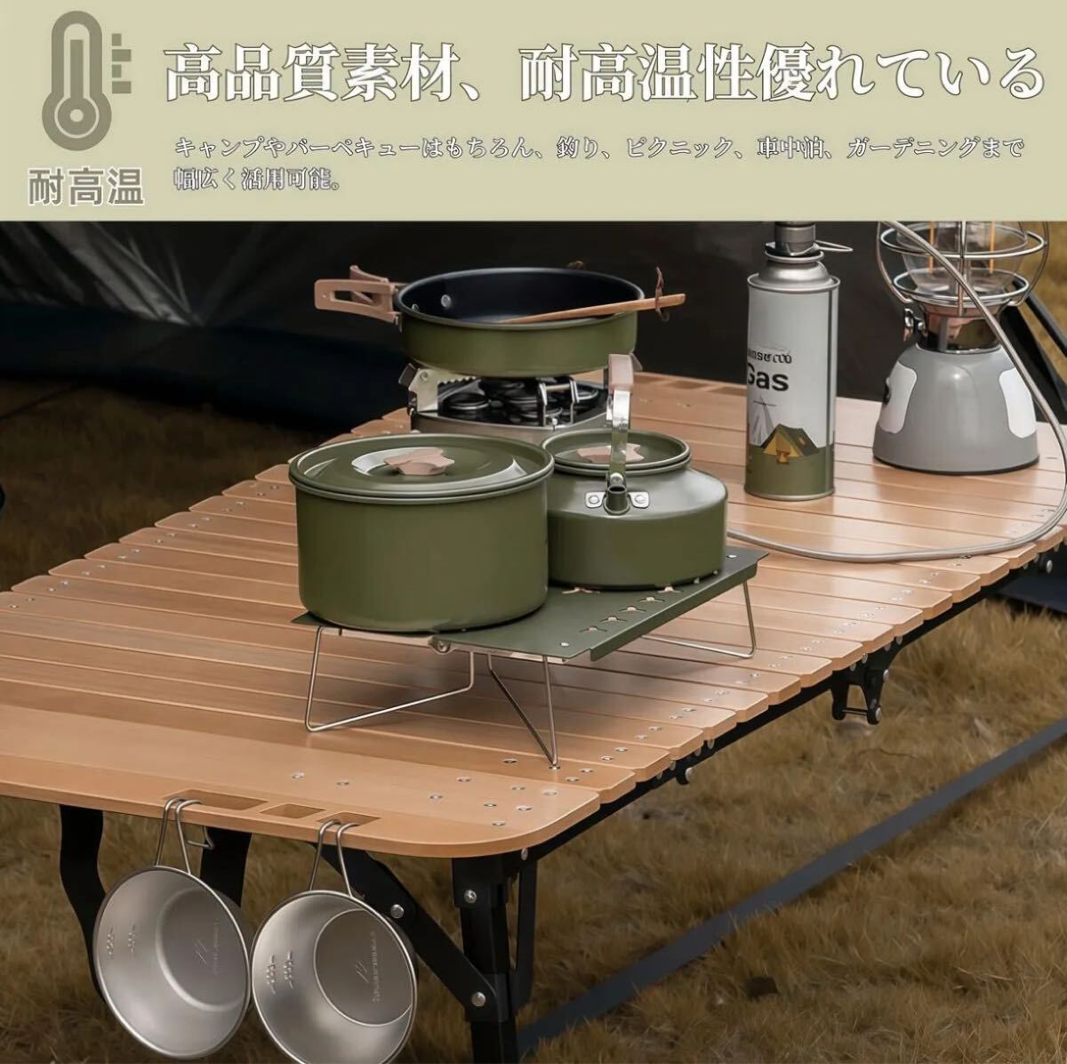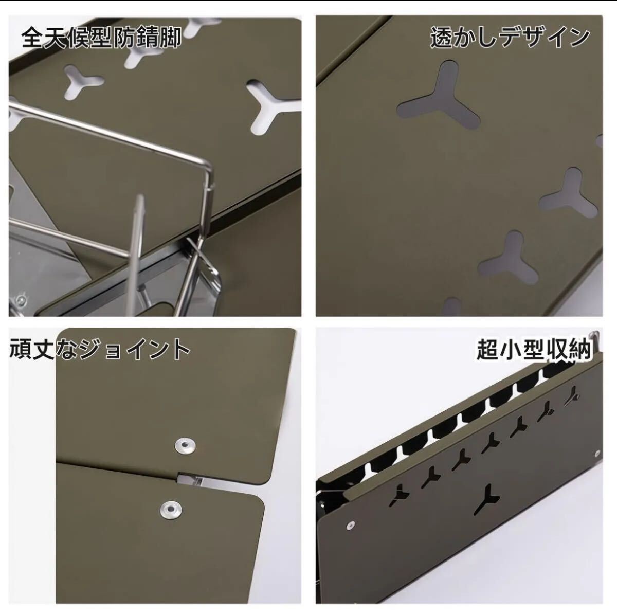 【軽量的な395g・衛生的なメッシュ構造のキャンプテーブル】高品質アルミニウム合金と独自のメッシュデザインにより、驚異的な軽量395gを実現したアウトドアテーブルです。この折りたたみテーブルは、従来品に比べ約30%も軽量化されながら、汚れが落ちやすいオープン構造で、衛生面でも優れています。軽くて清潔なキャンプテーブルは、アウトドアでの食事をより快適にします。