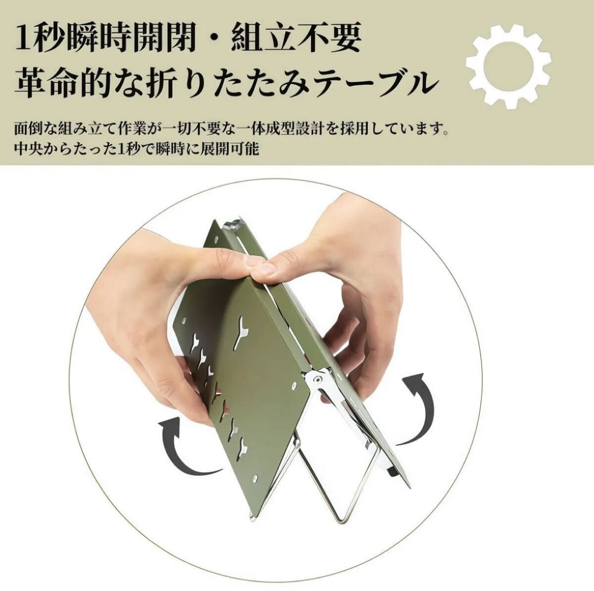 【1秒瞬時開閉・組立不要・革命的な折りたたみテーブル】アウトドアテーブルは、従来のキャンプテーブルとは異なり、面倒な組み立て作業が一切不要な一体成型設計を採用しています。中央からたった1秒で瞬時に展開可能で、キャンプ設営の手間を大幅に削減。忙しいアウトドアシーンでも、すぐに使える折りたたみテーブルとして、時間と労力を節約します。組立のストレスから解放される、まったく新しいキャンプテーブルです。