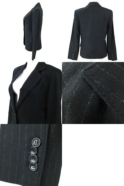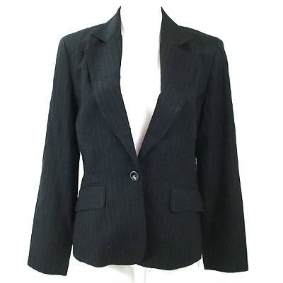 | オンオフ問わずに使える便利なジャケット♪ 黒に近いグレー×白のピンストライプの効果で すっきりとした着こなしに☆ パンツスタイルでマニッシュにはもちろん、 スカートなど女性らしいアイテムとのミックスもおすすめです。 お袖口のボタンデザインがさり気なくポイント! 使用感の少ないお品ですので、スタッフ一押しですよ。 着丈約59cm 袖丈58cm 肩幅37cm バスト約88cm 【サイズ】:(2) 【素 材】:(%・%) 【 色 】:() 【程 度】:(A) **** 12150902-025 421 003 | ||||