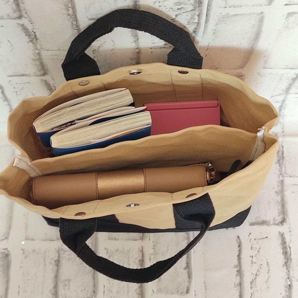 小さめサイズでもマチ幅が広く、500mlのペットボトルや、長財布、スマホ、化粧ポーチなどからランチボックスまで、外出時に必要な物が全部入ります。