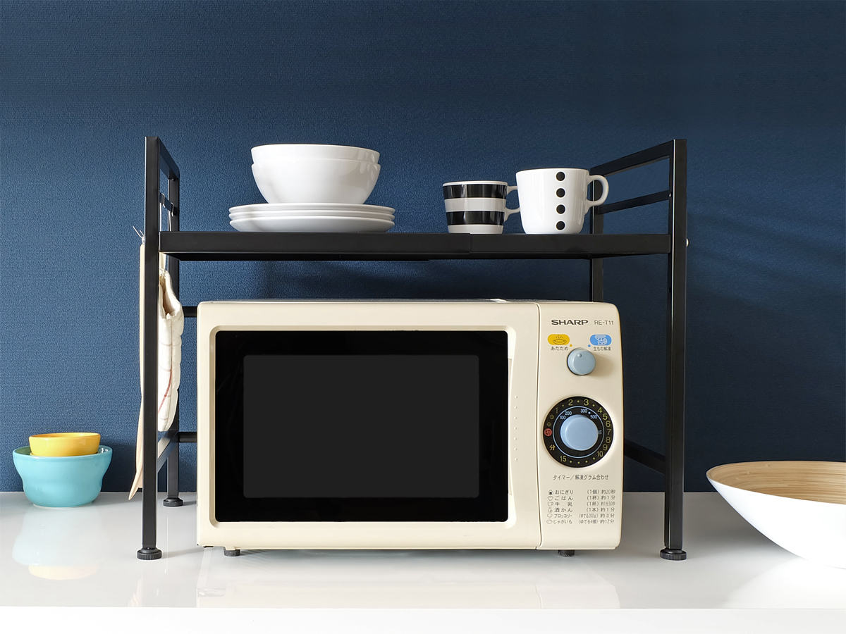 電子レンジの大きさや置く場所に合わせて、収納スペースの調整ができますので、