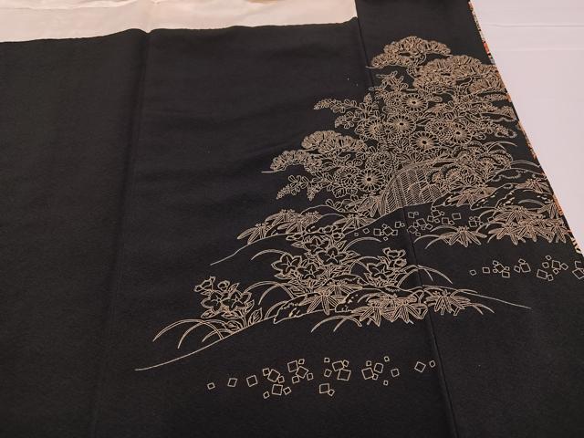 | 【正絹・五つ紋・比翼仕立て】 状態は接写画像のように比翼・衿裏・胴裏・比翼衿に薄い汚れがございますが その他特に目立ったシミ汚れなどもなく大変良い状態です。 大変上質な逸品になります。 お安く出品致しますので、是非この機会にいかがでしょうか?