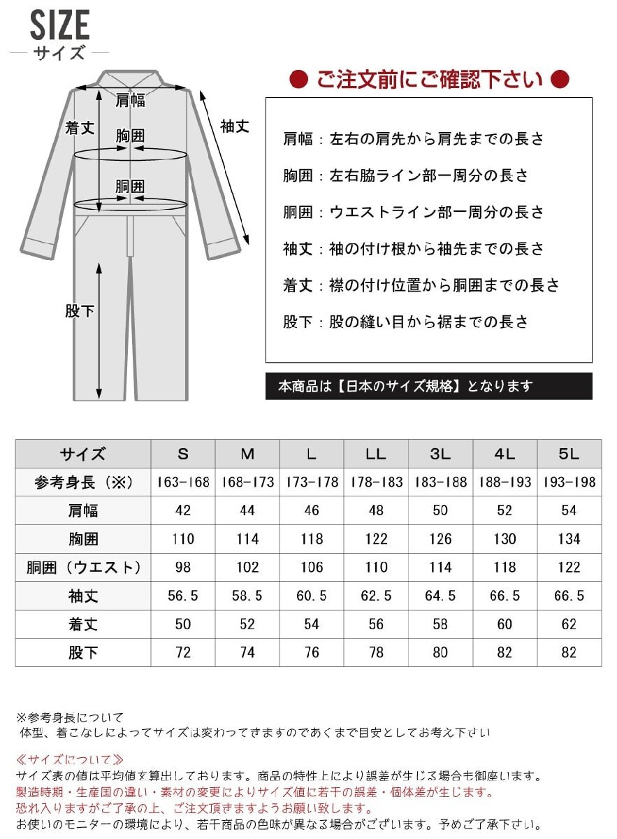 トイレも楽々ヒップオープン機能付き長袖ツナギ