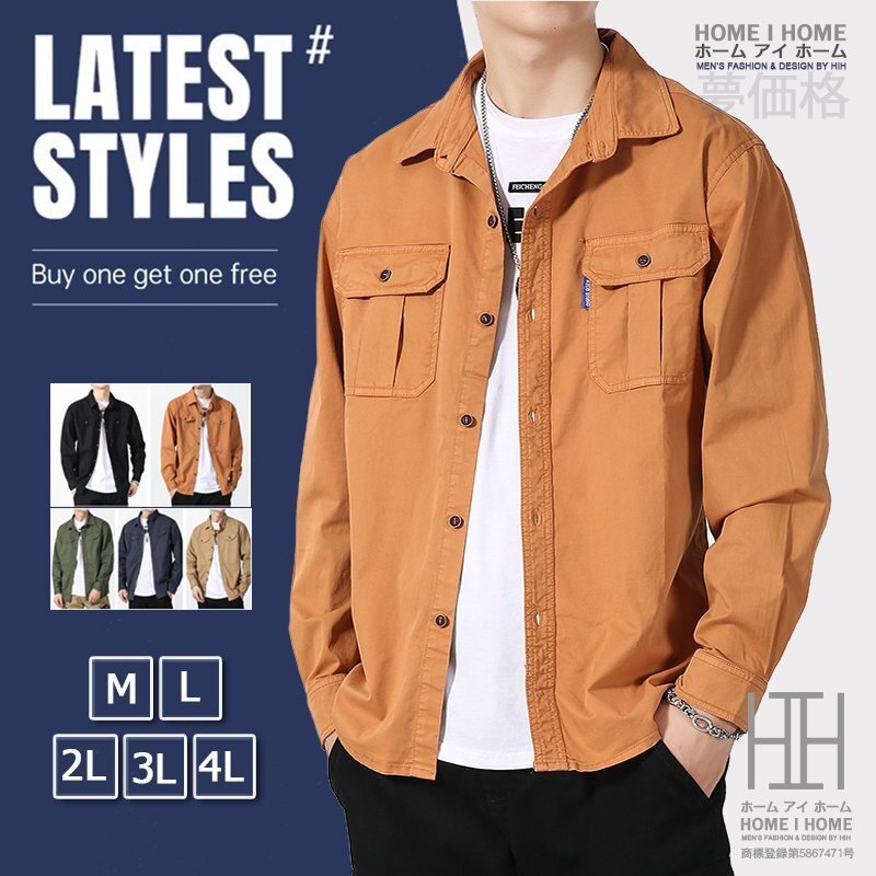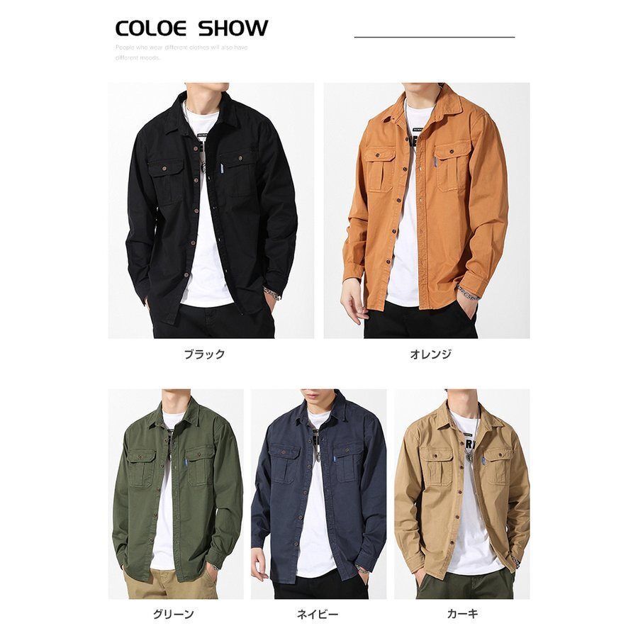 アウター カバーオール シャツジャケット ジャンパー メンズ 長袖 無地 ワーク 作業着 ライトアウター カジュアル 春秋 ブルゾン ワークシャツ
