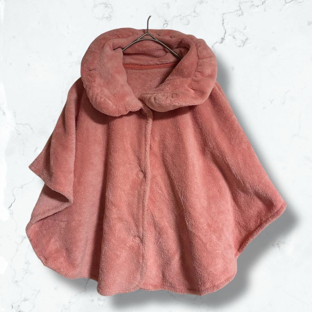 a2821 ノーブランド ケープ ピンク フリース ポンチョ かわいい 秋冬 65A5CF